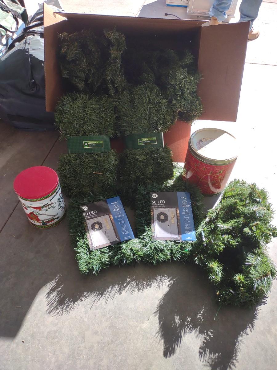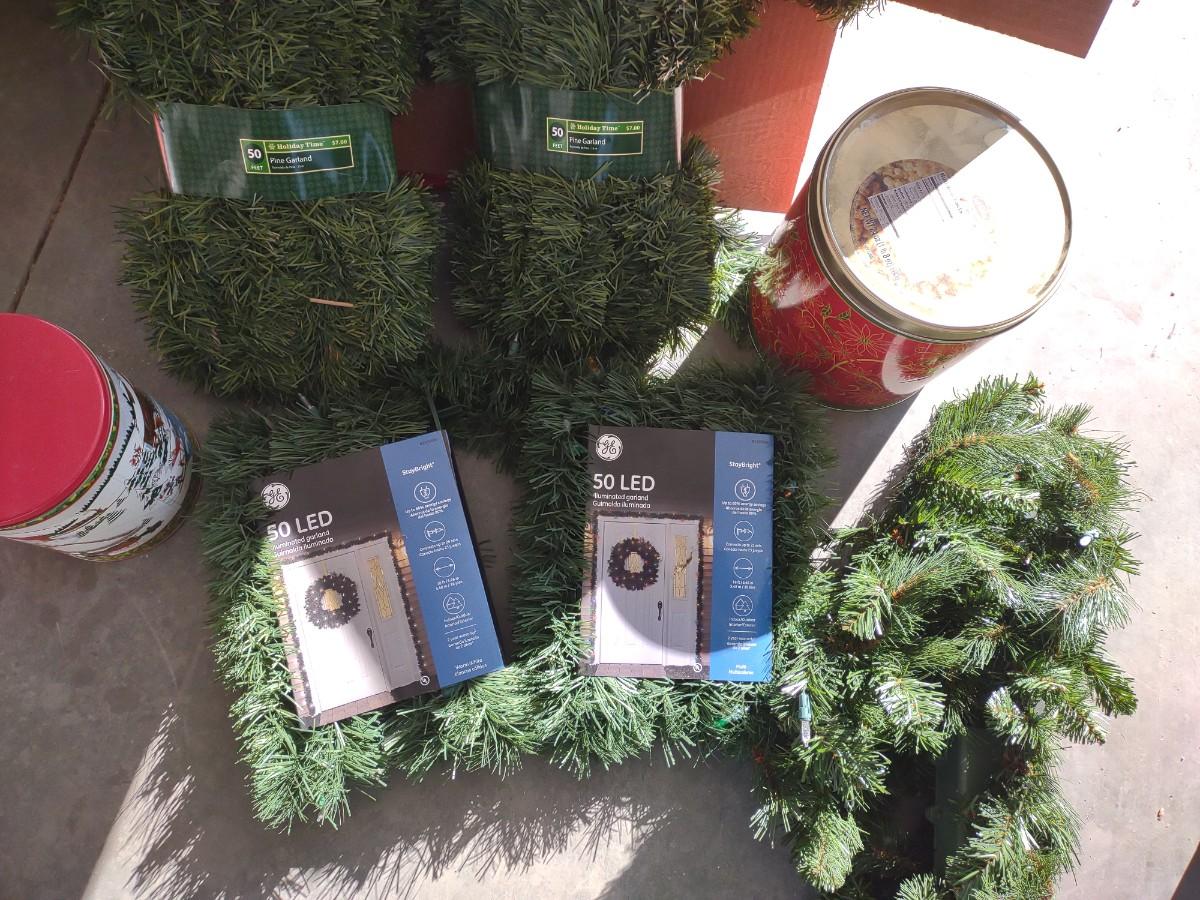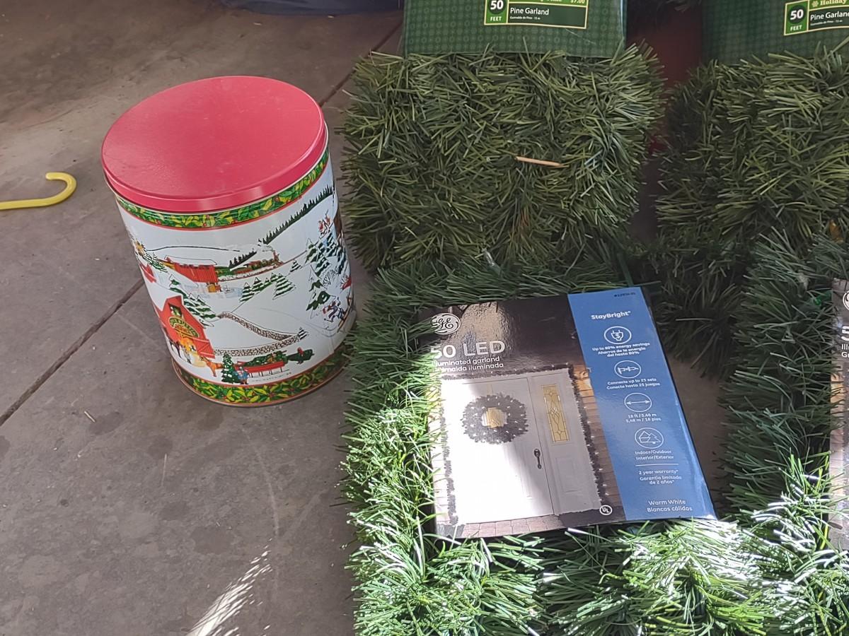FAUX CHRISTMAS GARLAND AND SOME TINS
