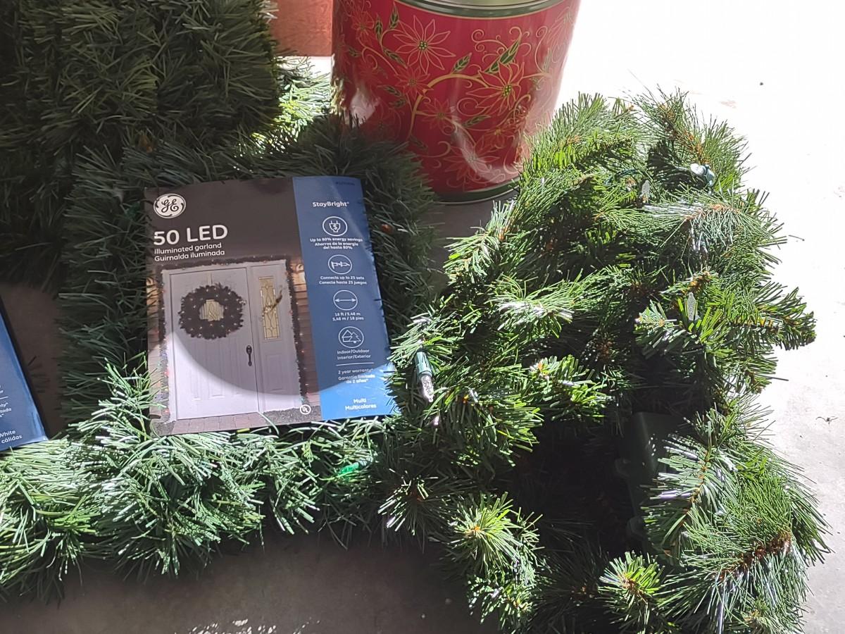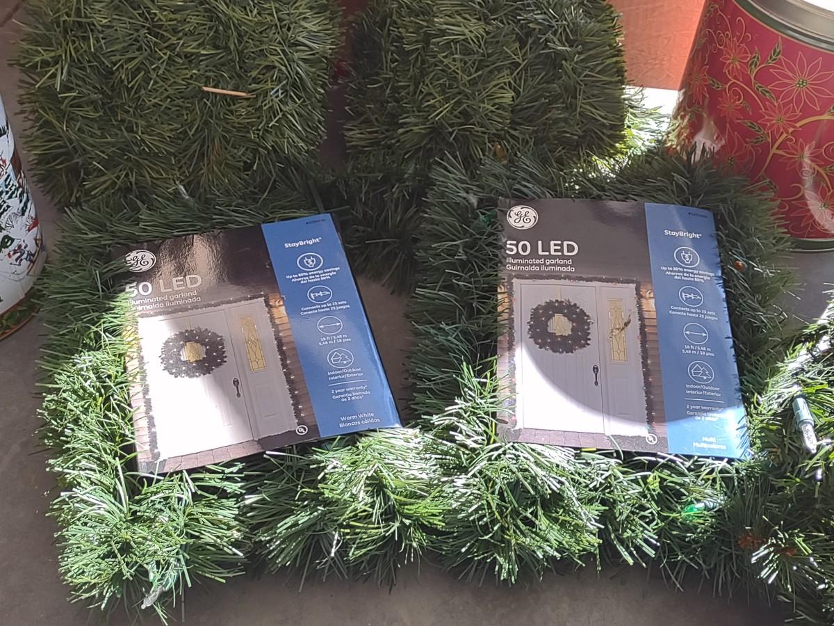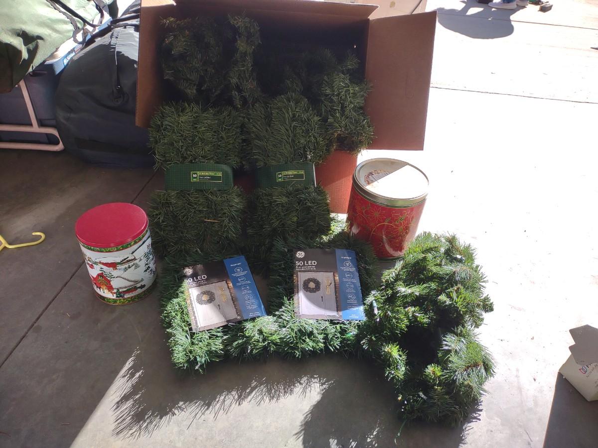 FAUX CHRISTMAS GARLAND AND SOME TINS