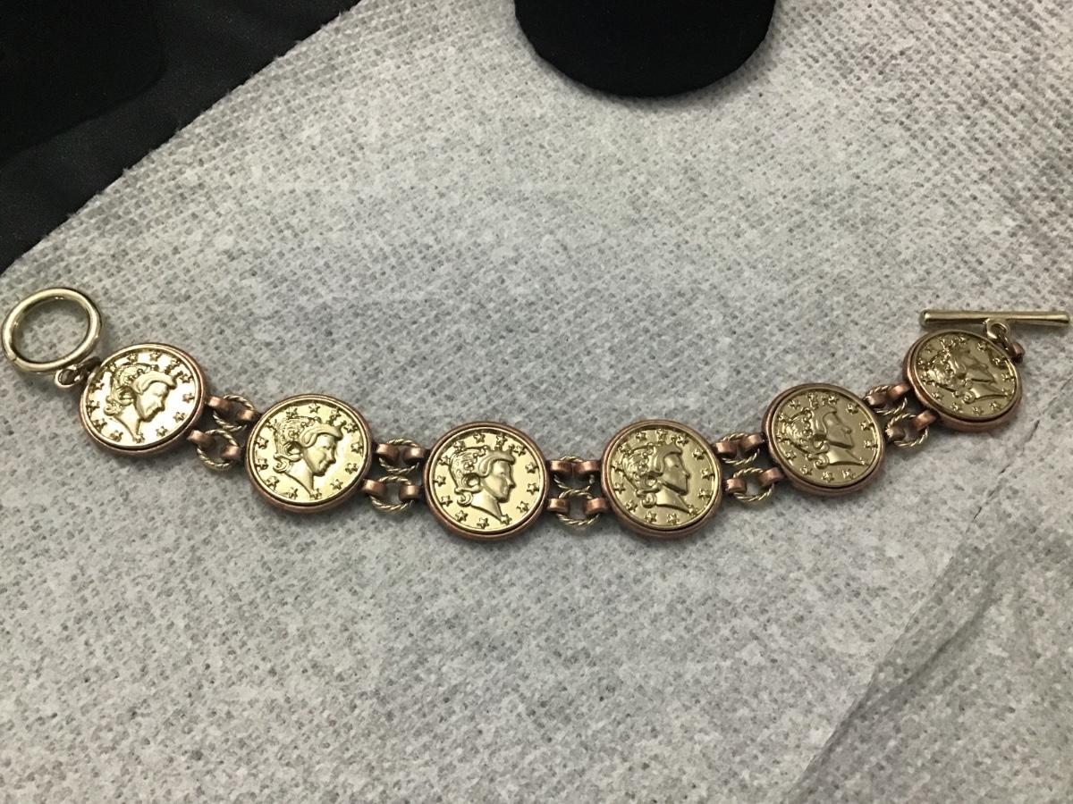 Faux Coin Toggle linked Bracelet