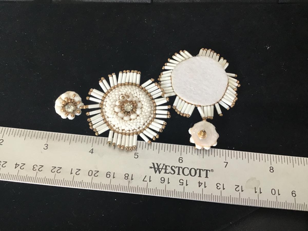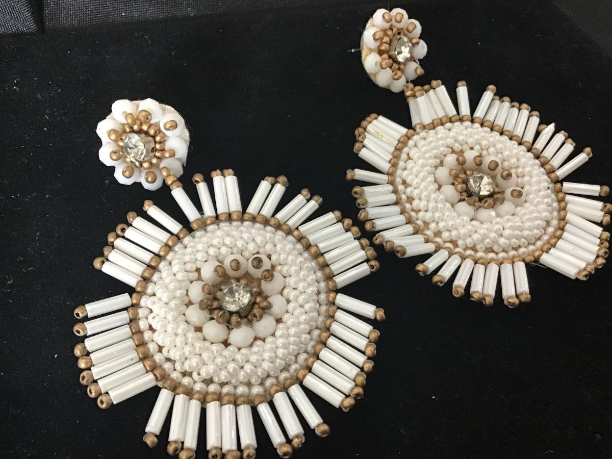 Faux Diamond White Glass Bead Large Dangling Earrings