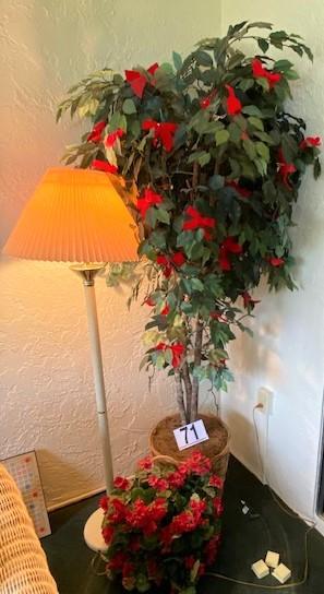 LOT#71: Faux Ficus Tree, Floor Lamp & Faux Geranium