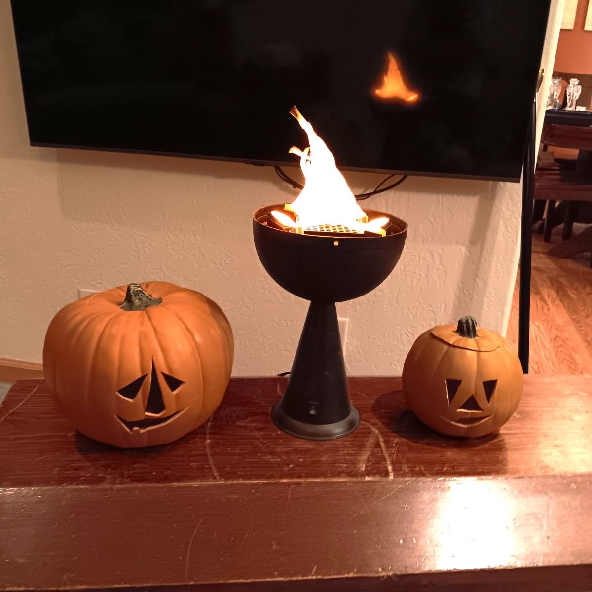 FAUX FLAME TORCH AND 2 FAUX JACK O LANTERNS