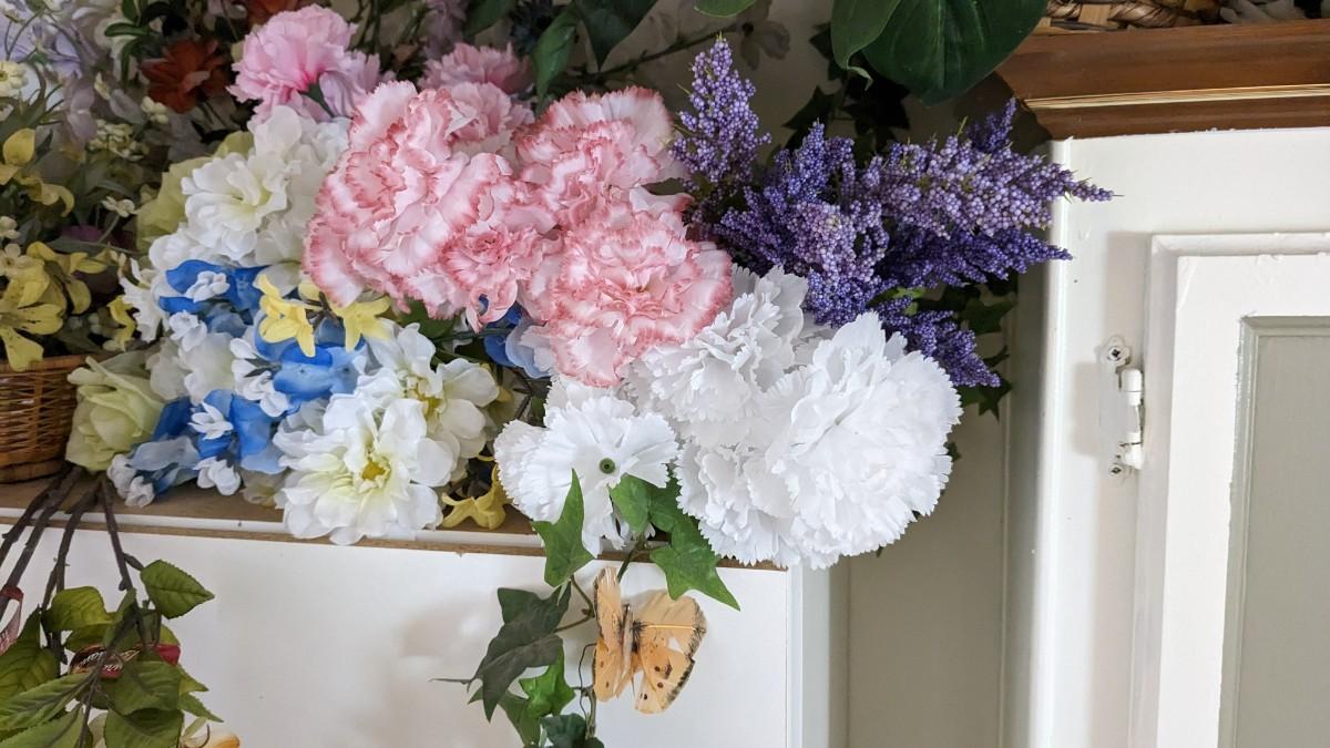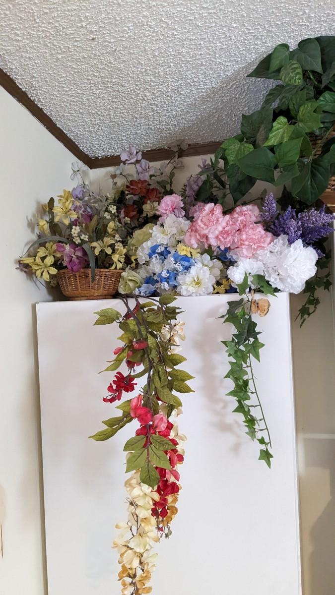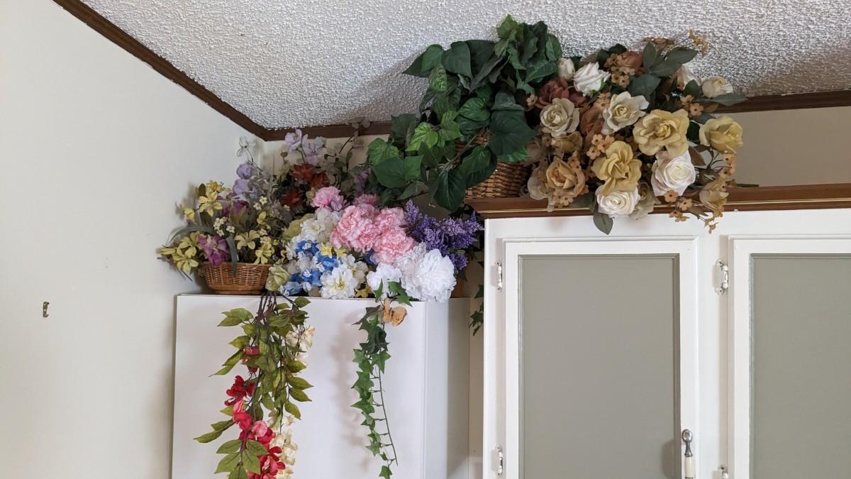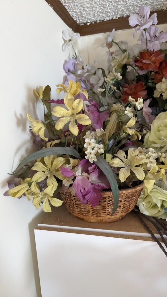 a nice little lot of loose and "potted" faux florals. Some still with tags, lovely assortments here. kitchen