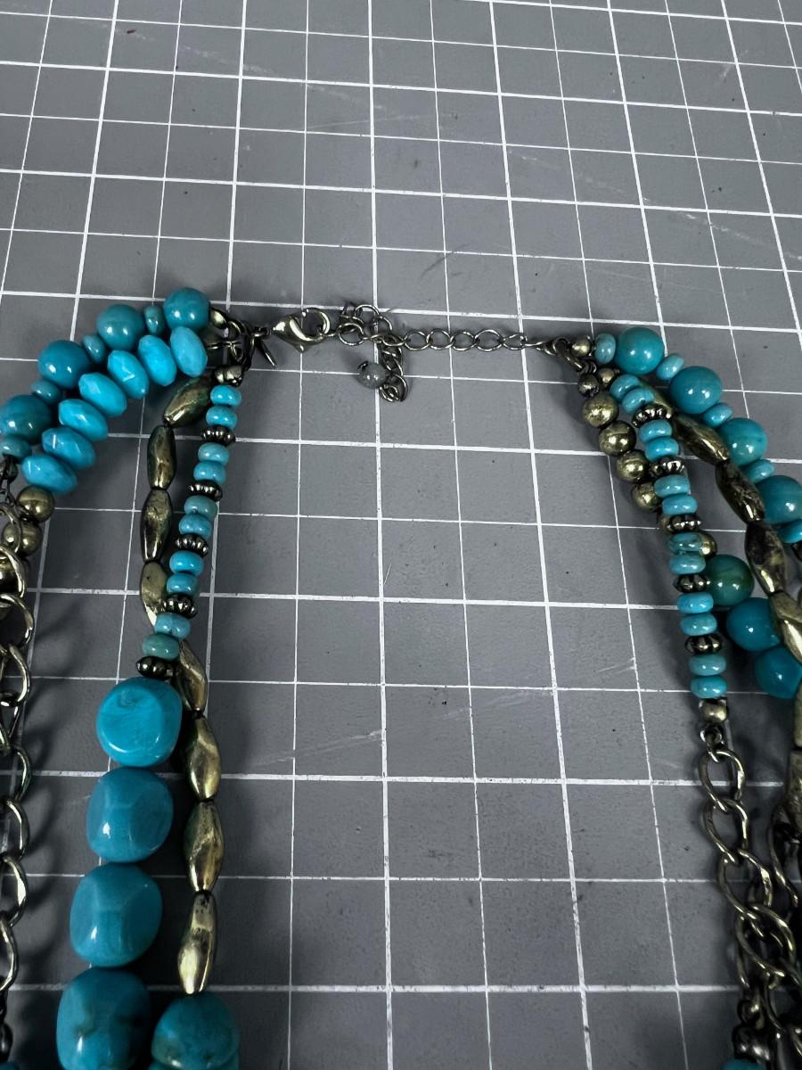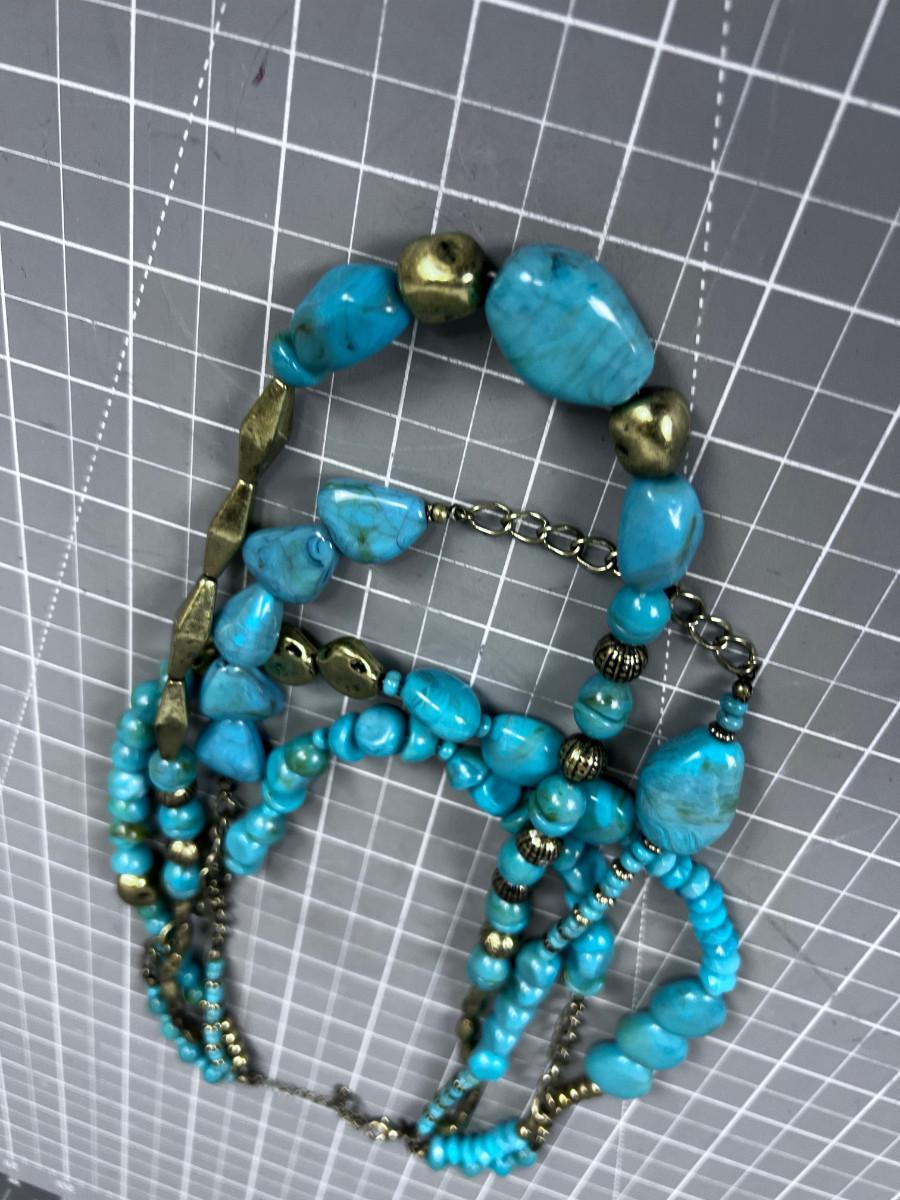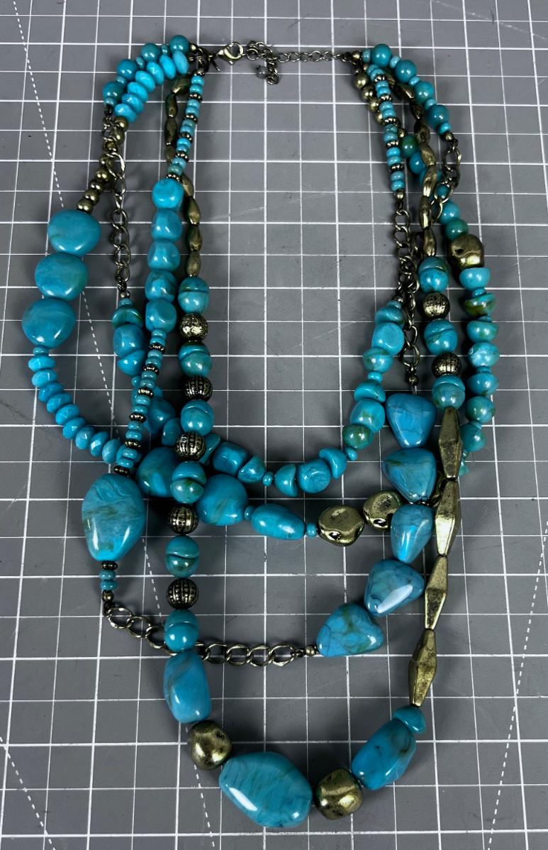 FAUX, FUN 4 Strand Costume Jewelry Marked SAQ, Brass and Turquoise COLOR