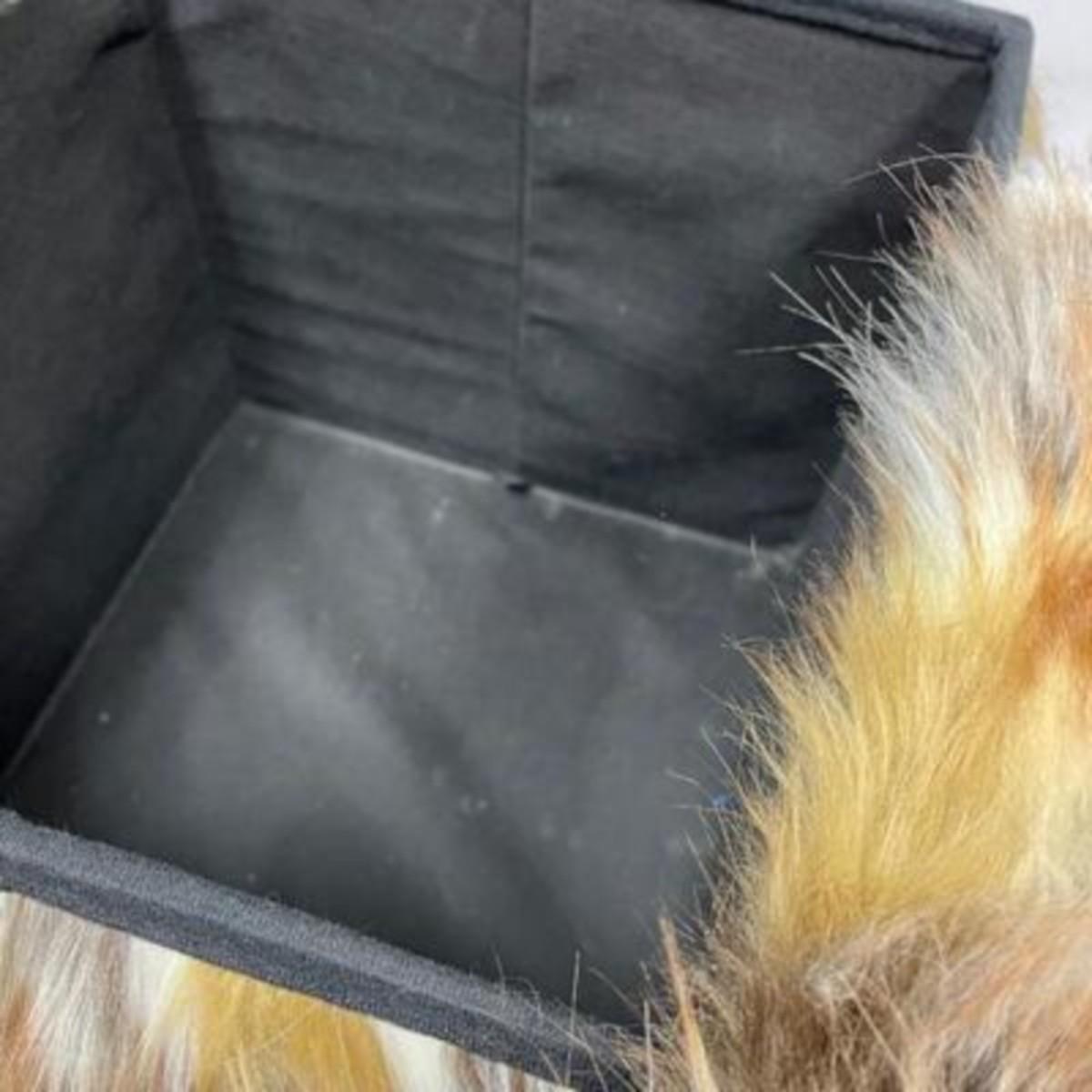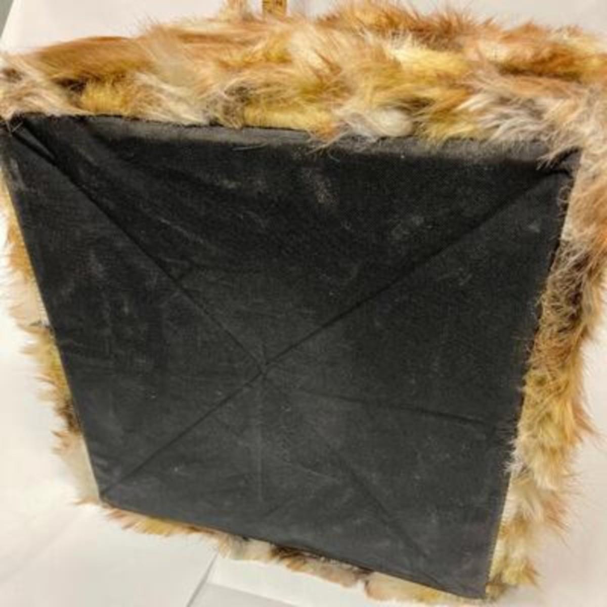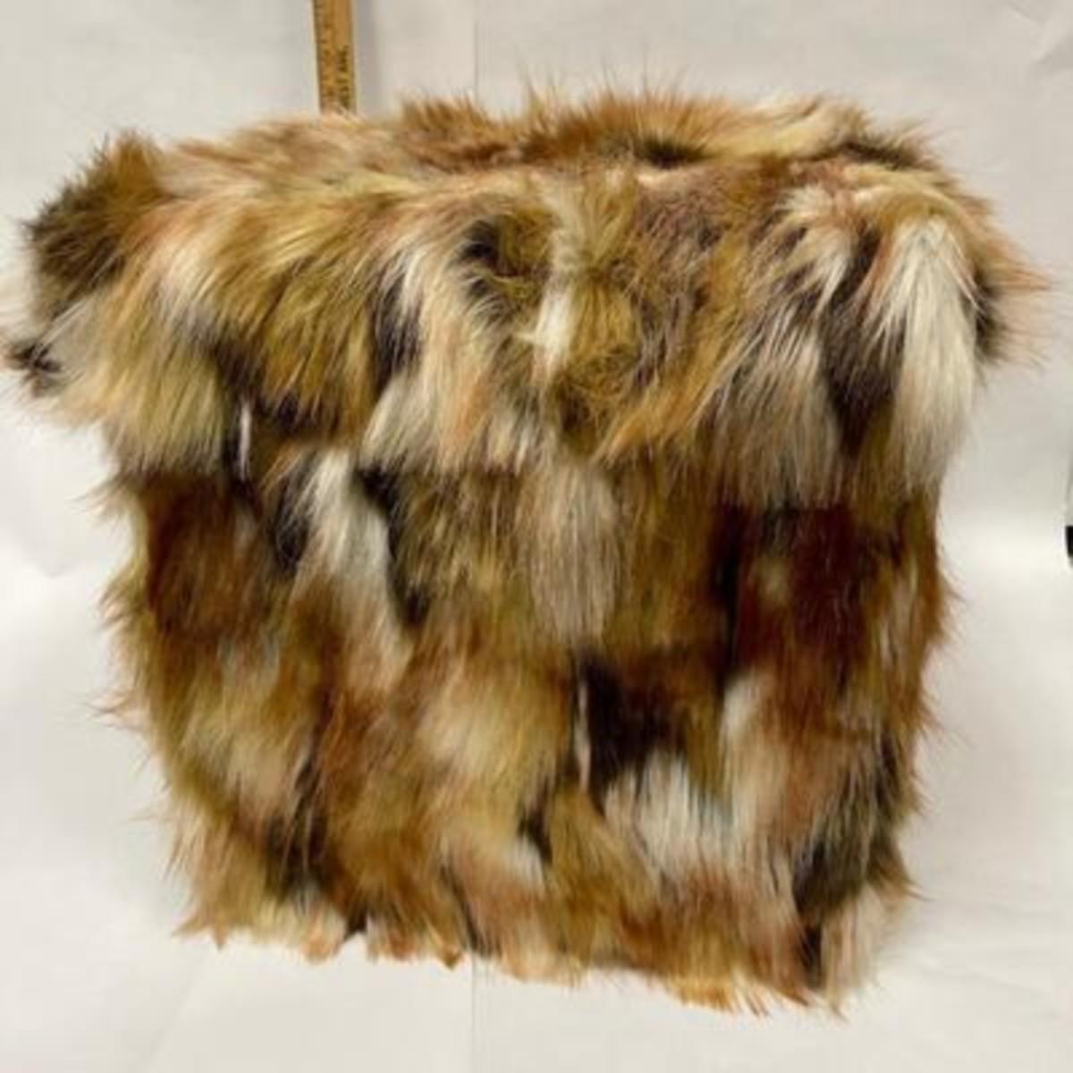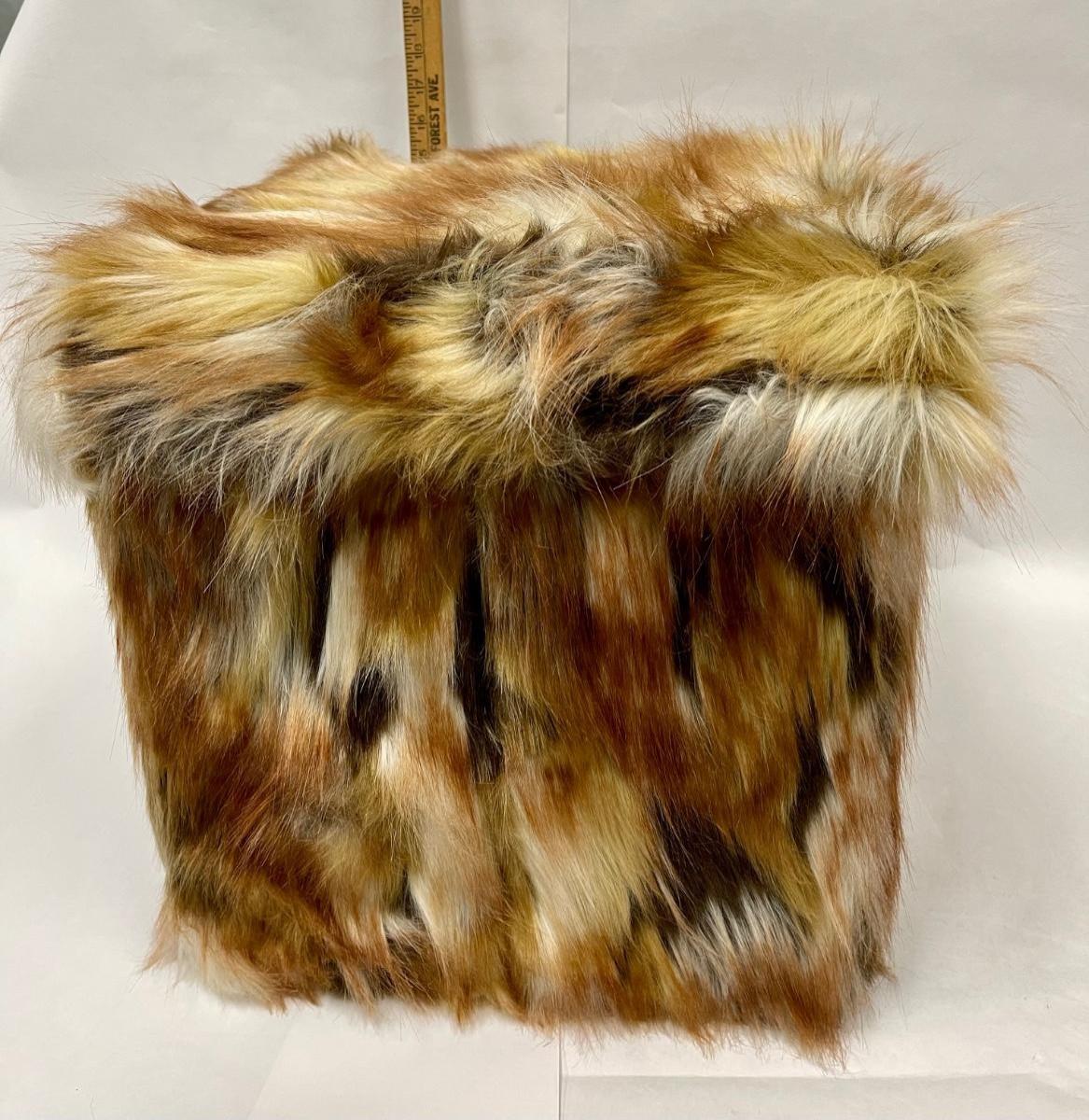 Furry storage cube ottoman. Faux fur looks like fox, very soft. About 16" size.