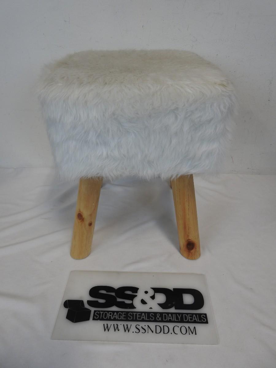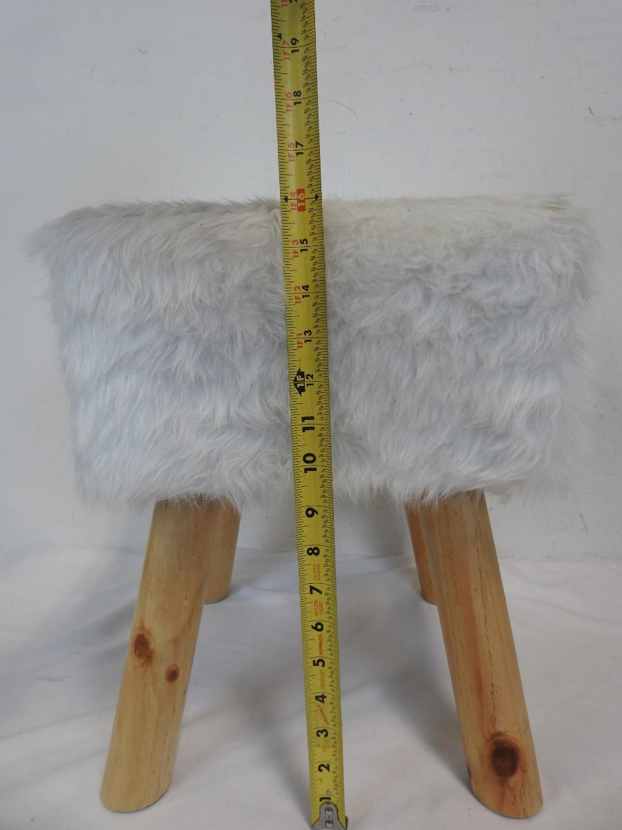 Faux Fur Wooden Legs Stool Ottoman 16" tall