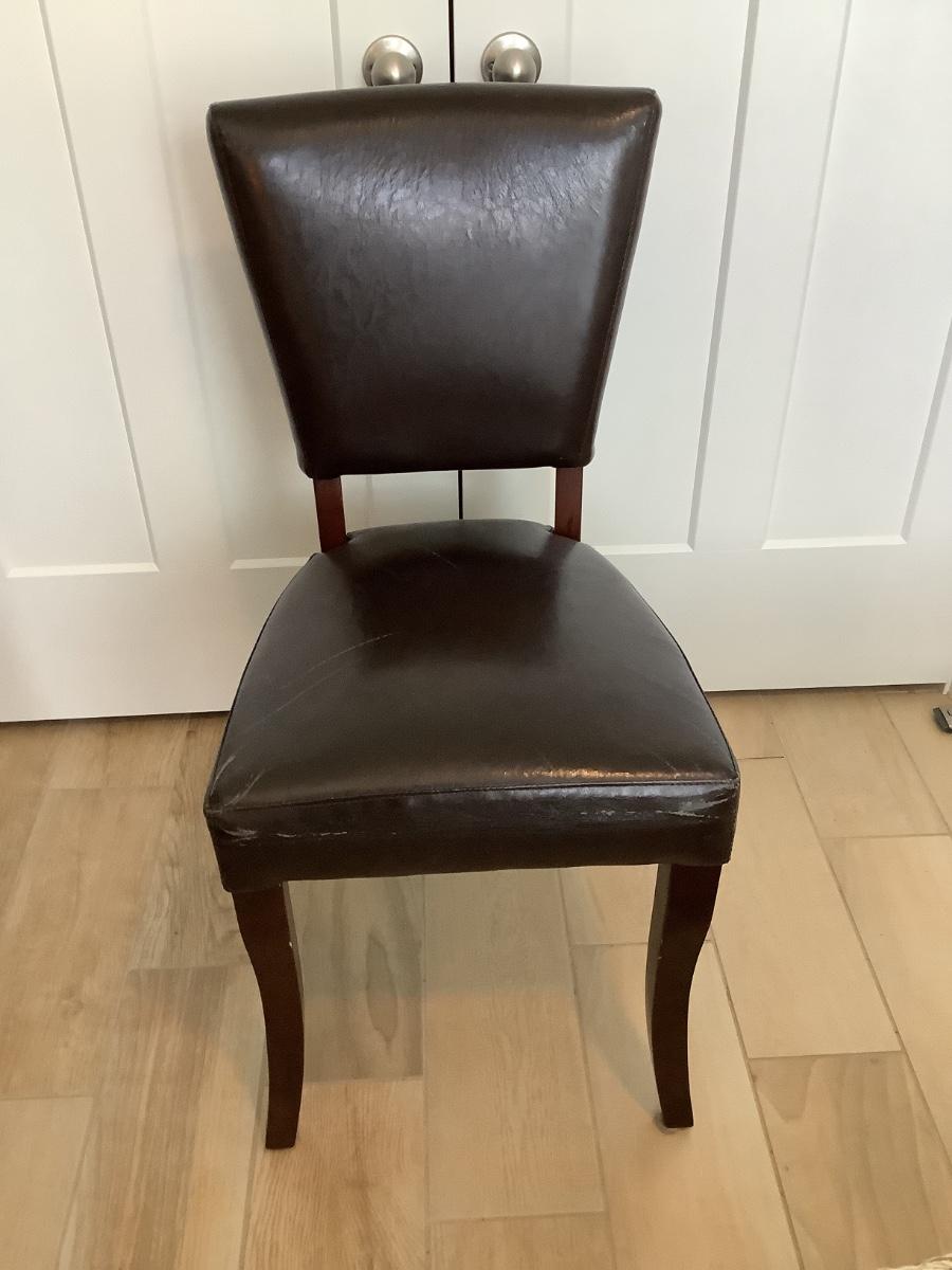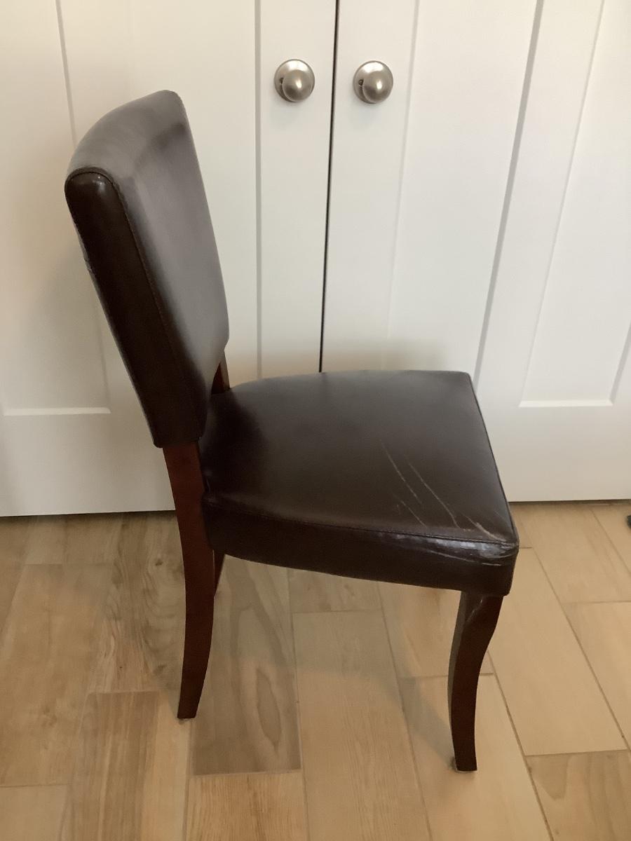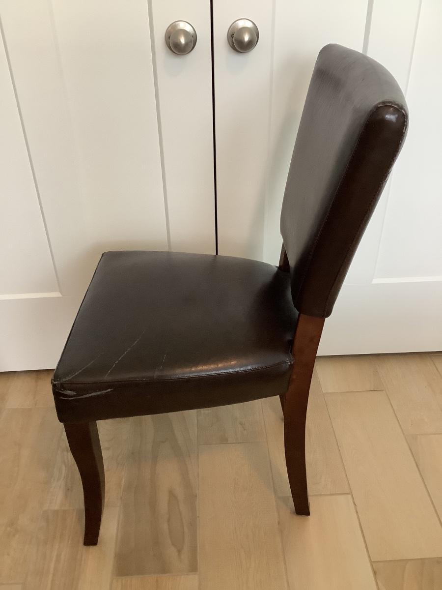 Faux leather chair with wear38”H 18”W 17”seat depth, 19” seat height