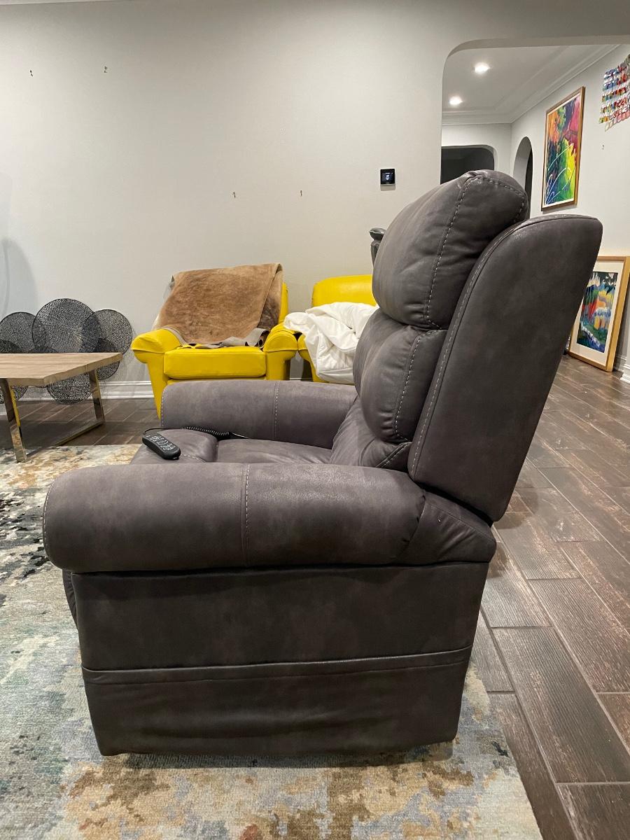 Perfect condition and very good quality. Purchased in August of 2021 and barely used. The upholstery is super-soft and its hard to tell if it's real leather or not.