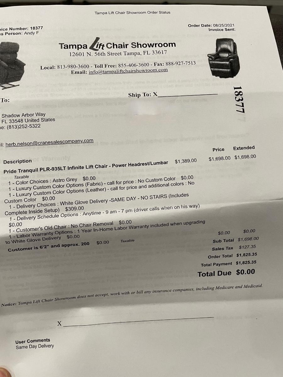Questions and offers for furniture can be made by email, phone call or text. 813-784-0235. Jenny@tendercaretampa.com