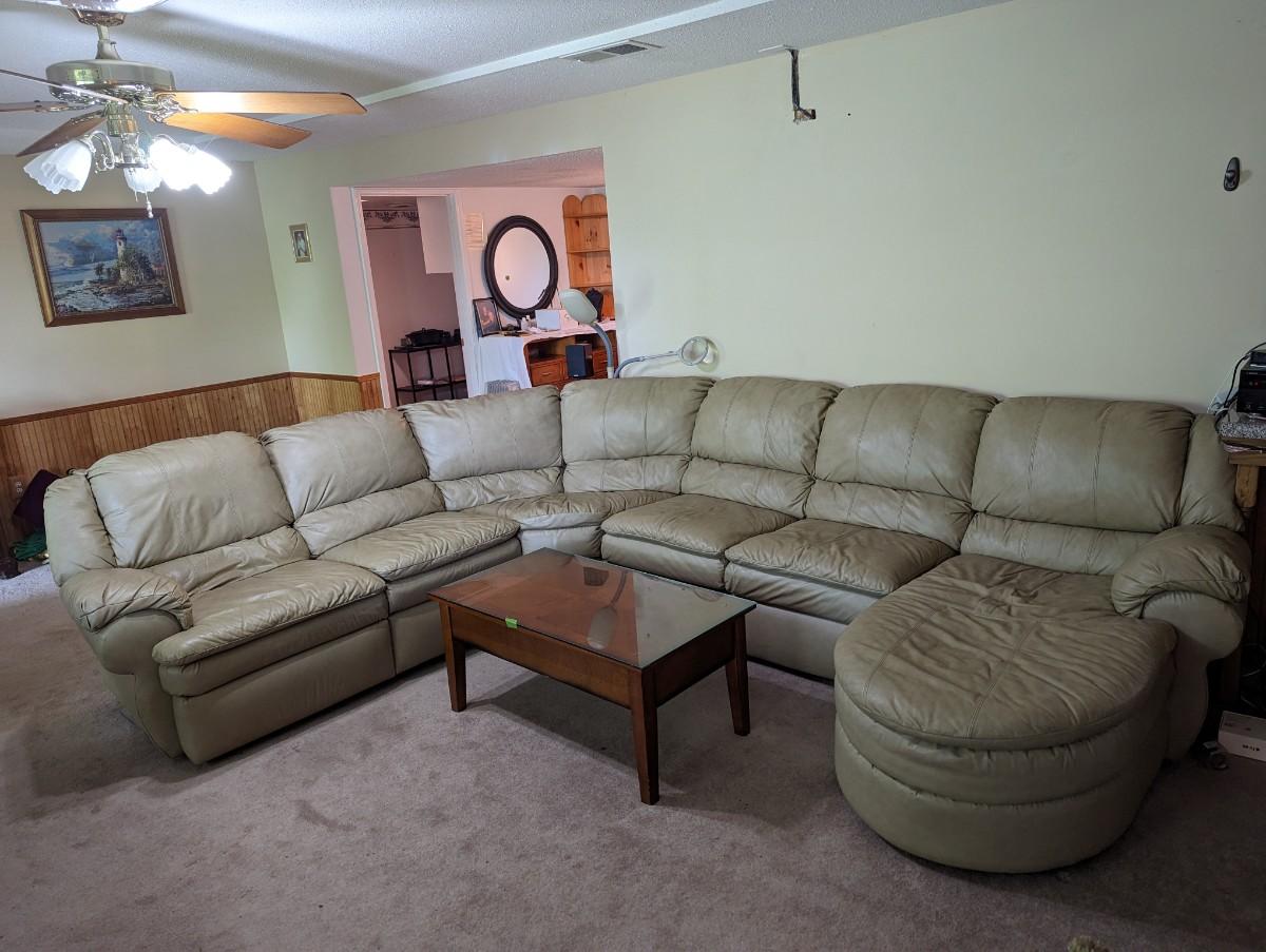 You will have Wooden steps and a steep driveway. Item is located in basement of home and will need to be carried up a flight of stairs. Please bring help to remove sofa.