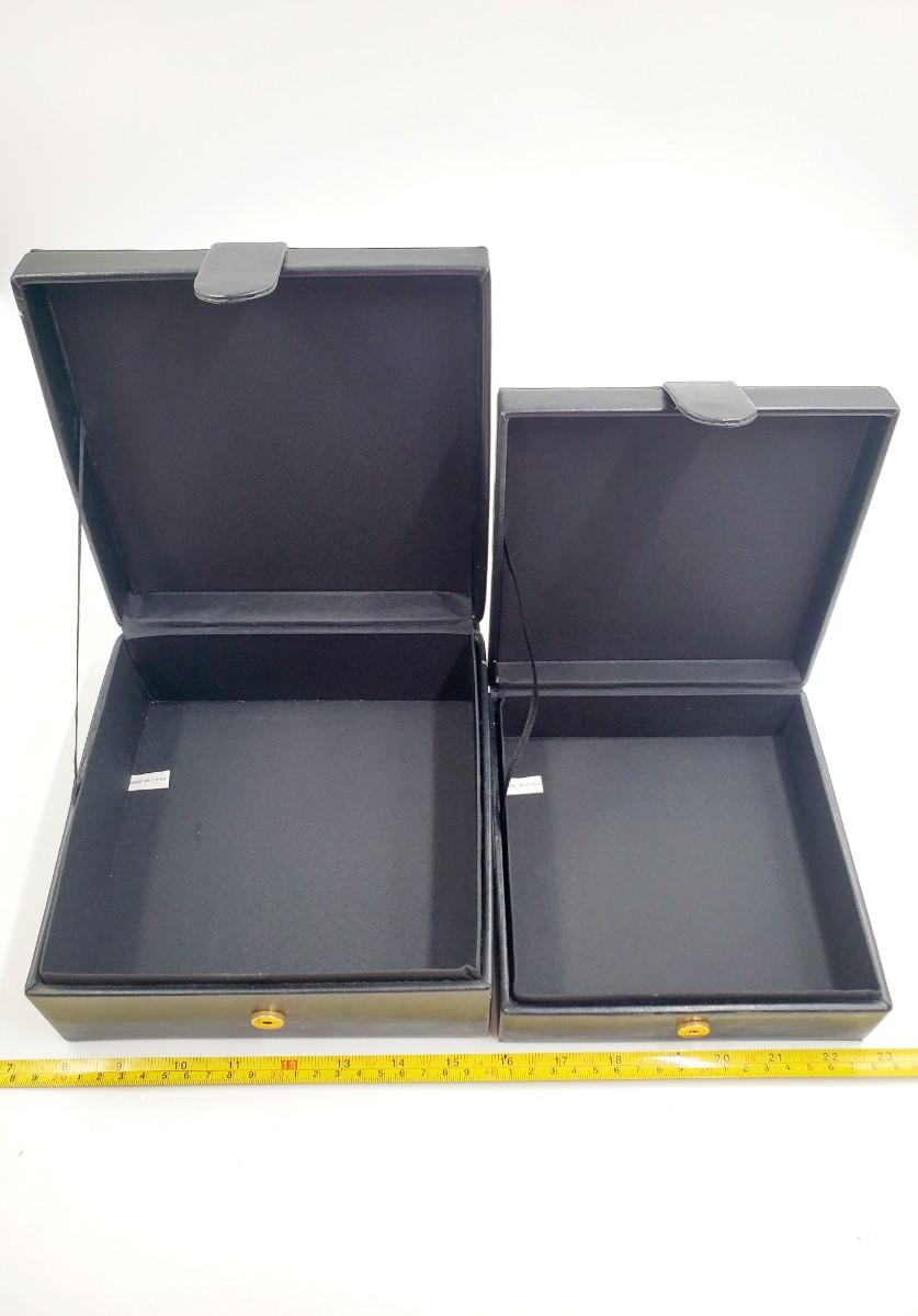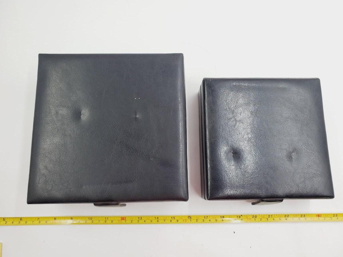 The smaller box fits nicely inside the larger one, both in good overall condition