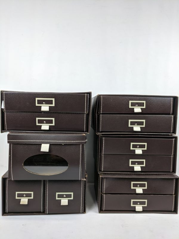 Faux Leather Storage Drawers, Set of 6, Brown, 19" Tall W/ 3 Stacked, 13" Wide