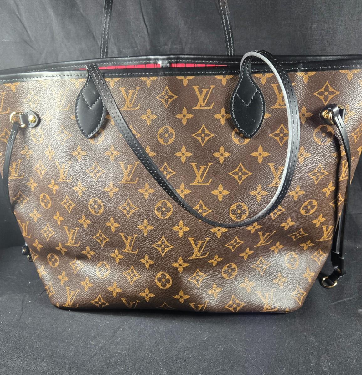 This auction lot is for a Faux LV Bag. It looks to be unused. No wear is evident. It measures about 18-inches wide x 10-inches tall x 5.5-inches wide. It is a very good fake. We looked good, searched and hoped for a serial number inside to no avail.