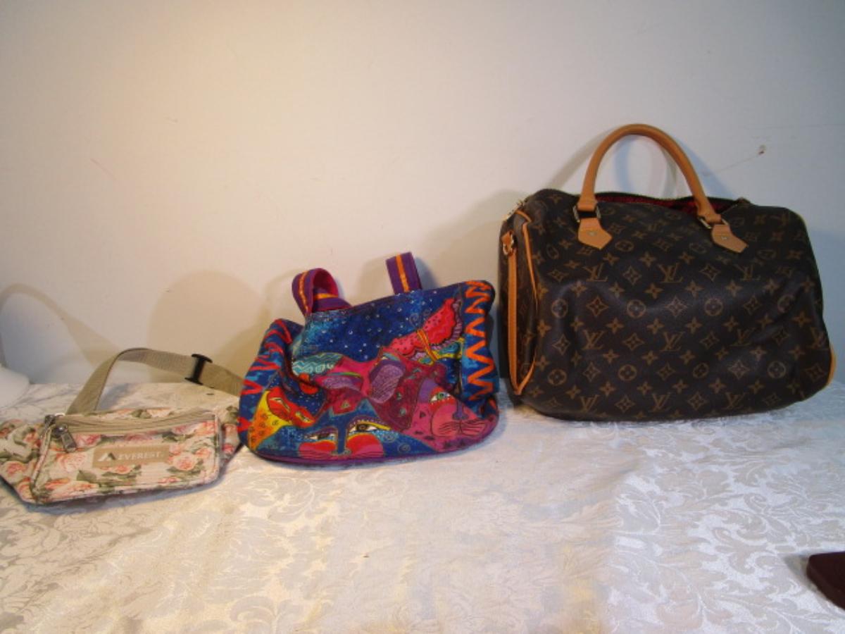 Faux Louis Vuitton handbag, Laurel Burch bag, Everest waist bag