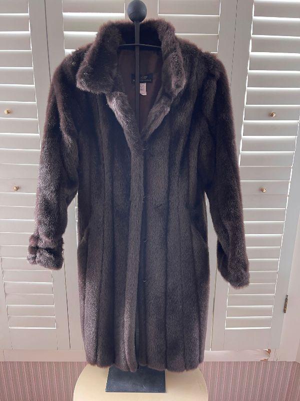 Faux Mink Coat Below-the-Knee Cuffed Sleeves Small
