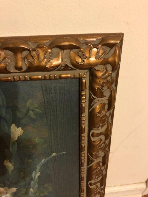 The picture doesn't do this justice. It has the look of an oil painting, but it isn't. It measures about 19.75" x 24.25" and is in very good condition.