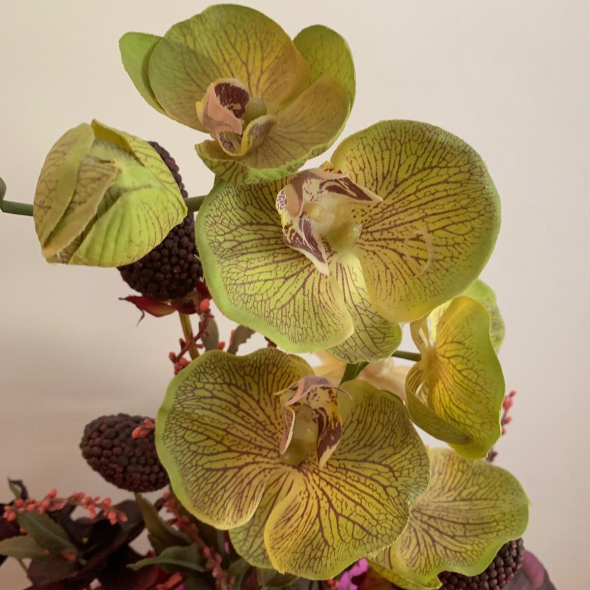 Faux Orchid Arrangement w/ Ornate Metal Stand (DR-HS)