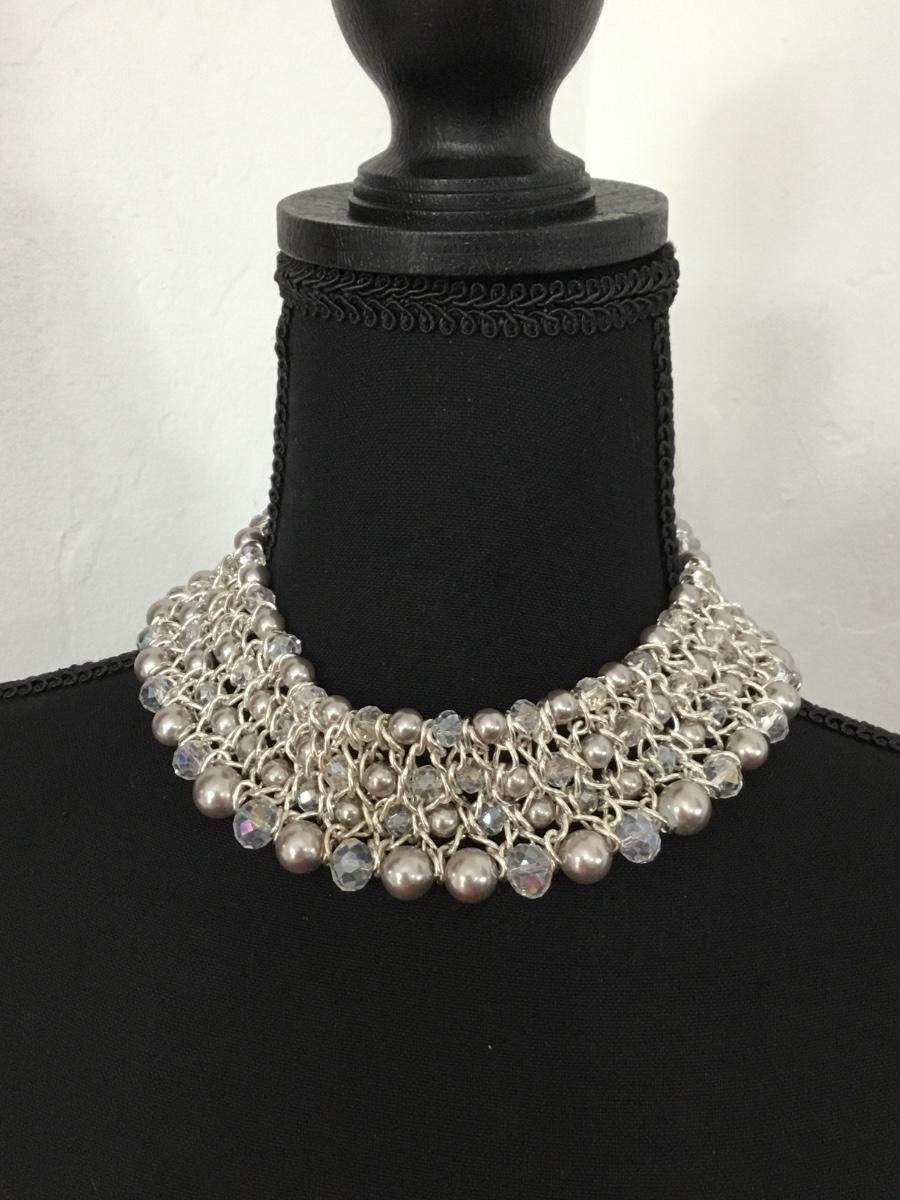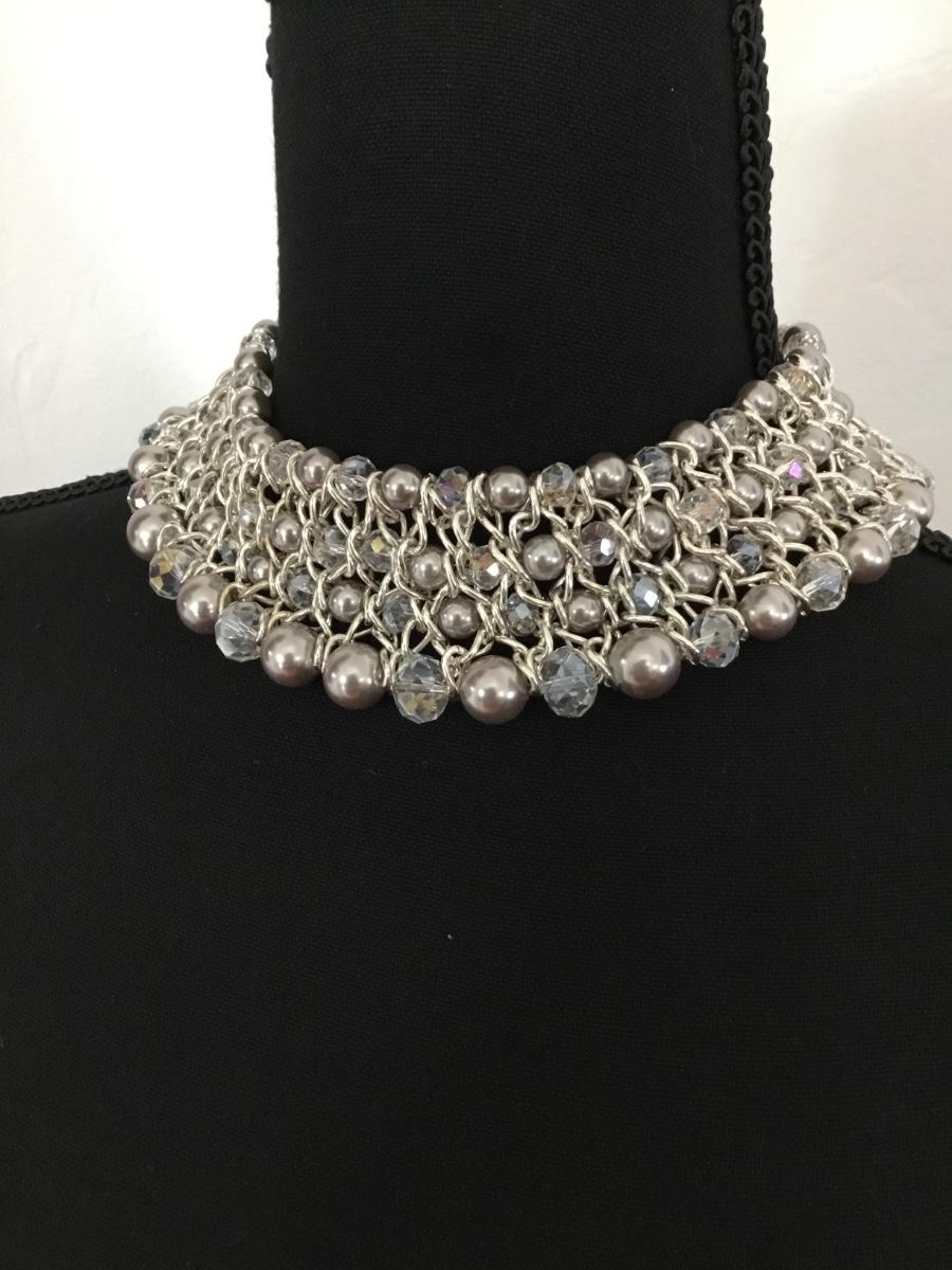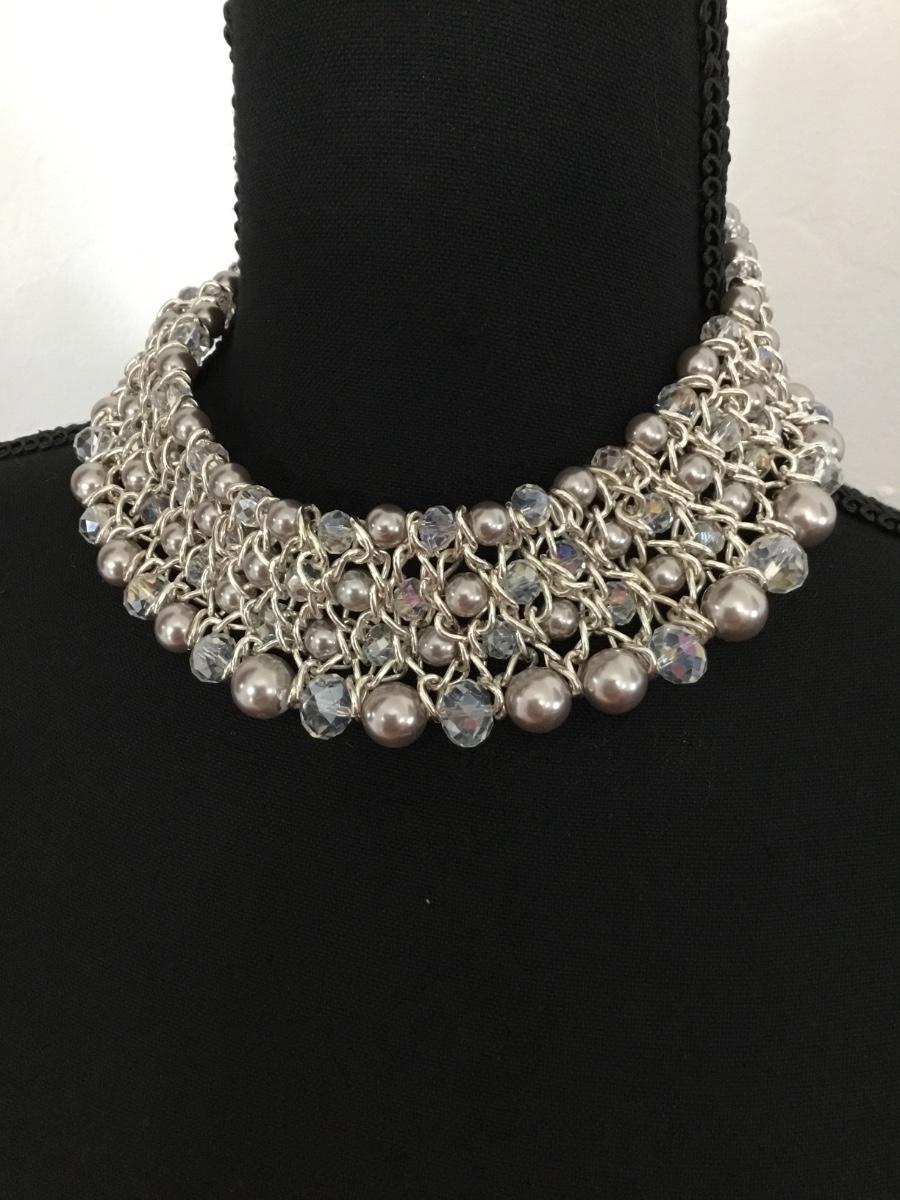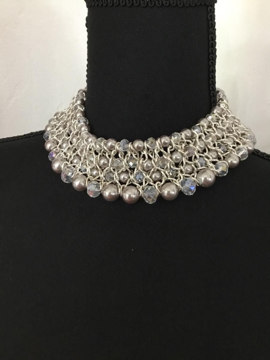 Faux Pearl AB Crystal Beaded Layered Bib Choker Collar Necklace