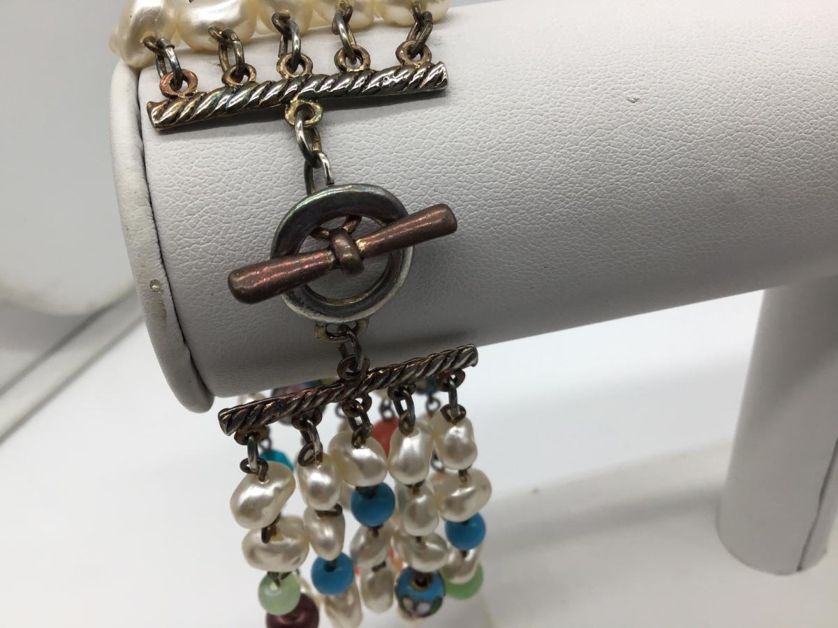 Faux Pearl and Glass Beaded Vintage Costume Bracelet