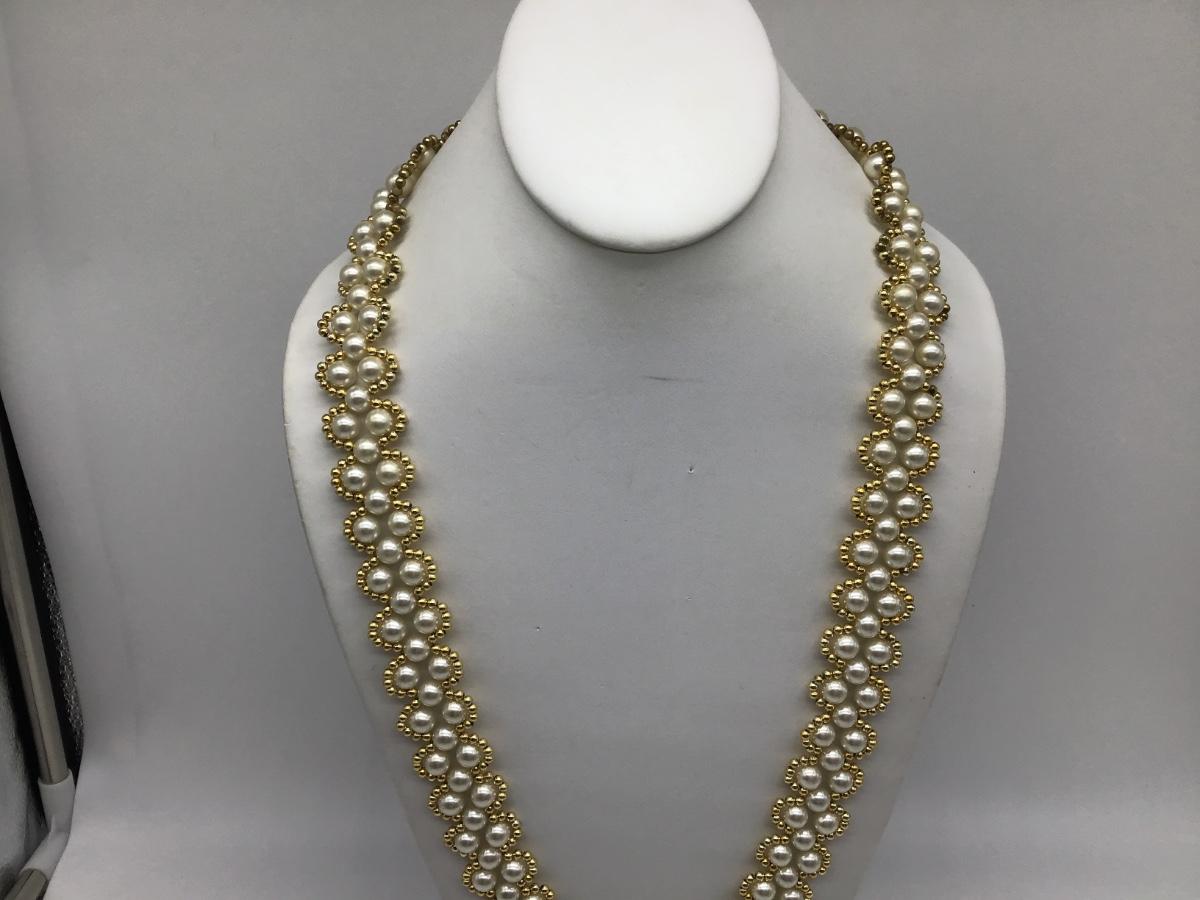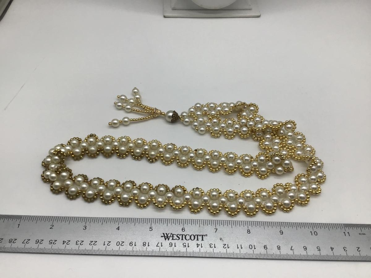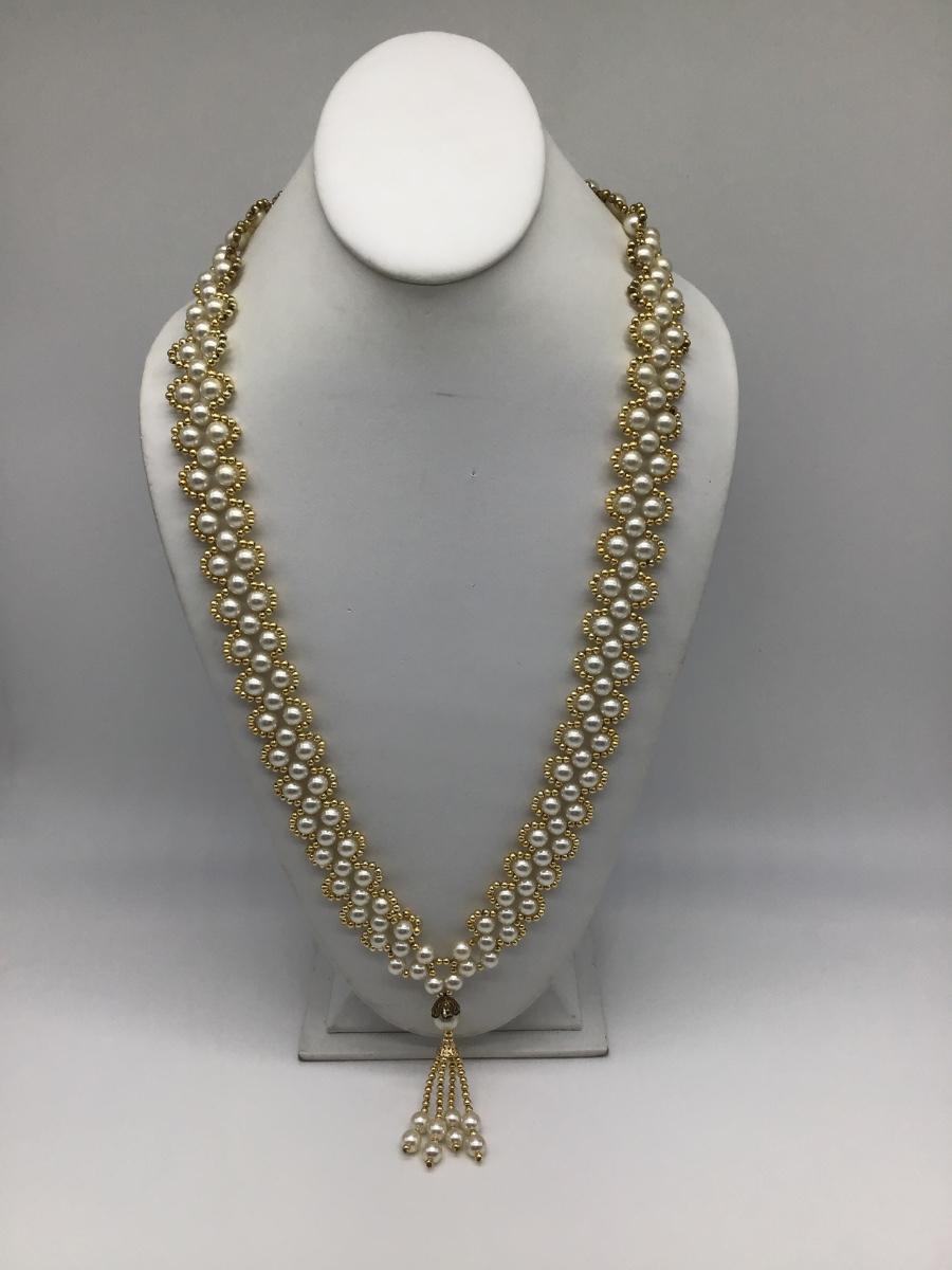 Faux Pearl and Gold Beaded Tasseled Necklace