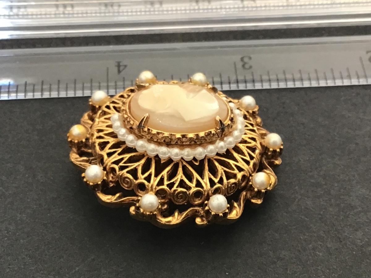 Faux Pearl Carved Cameo Brooch/ Pendant 1960