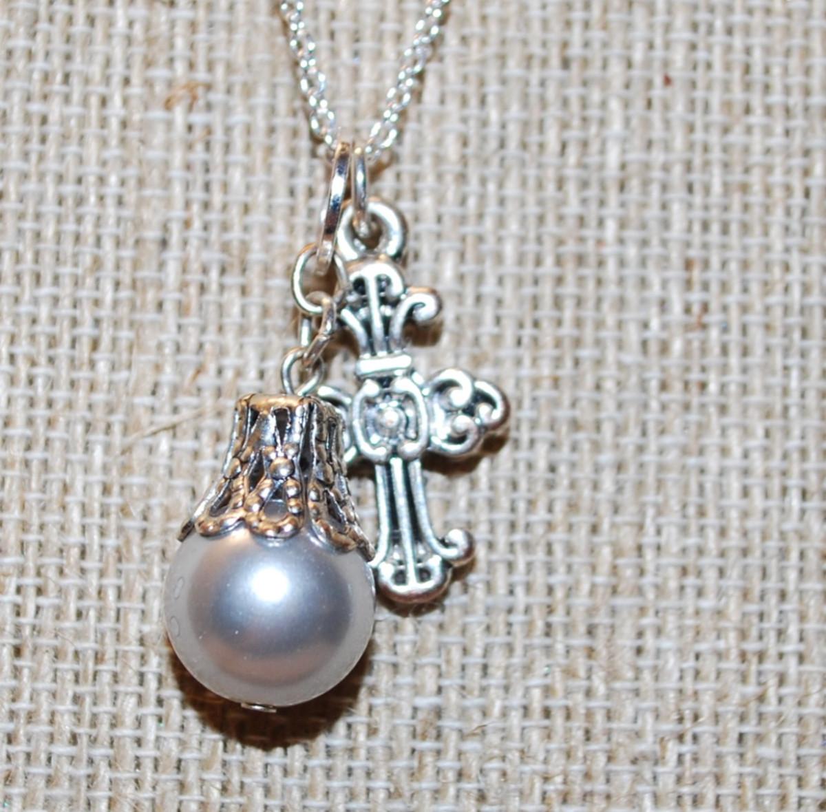 Faux Pearl & Cross PENDANTS (1") on an Adjustable Necklace Chain 14"-18" L