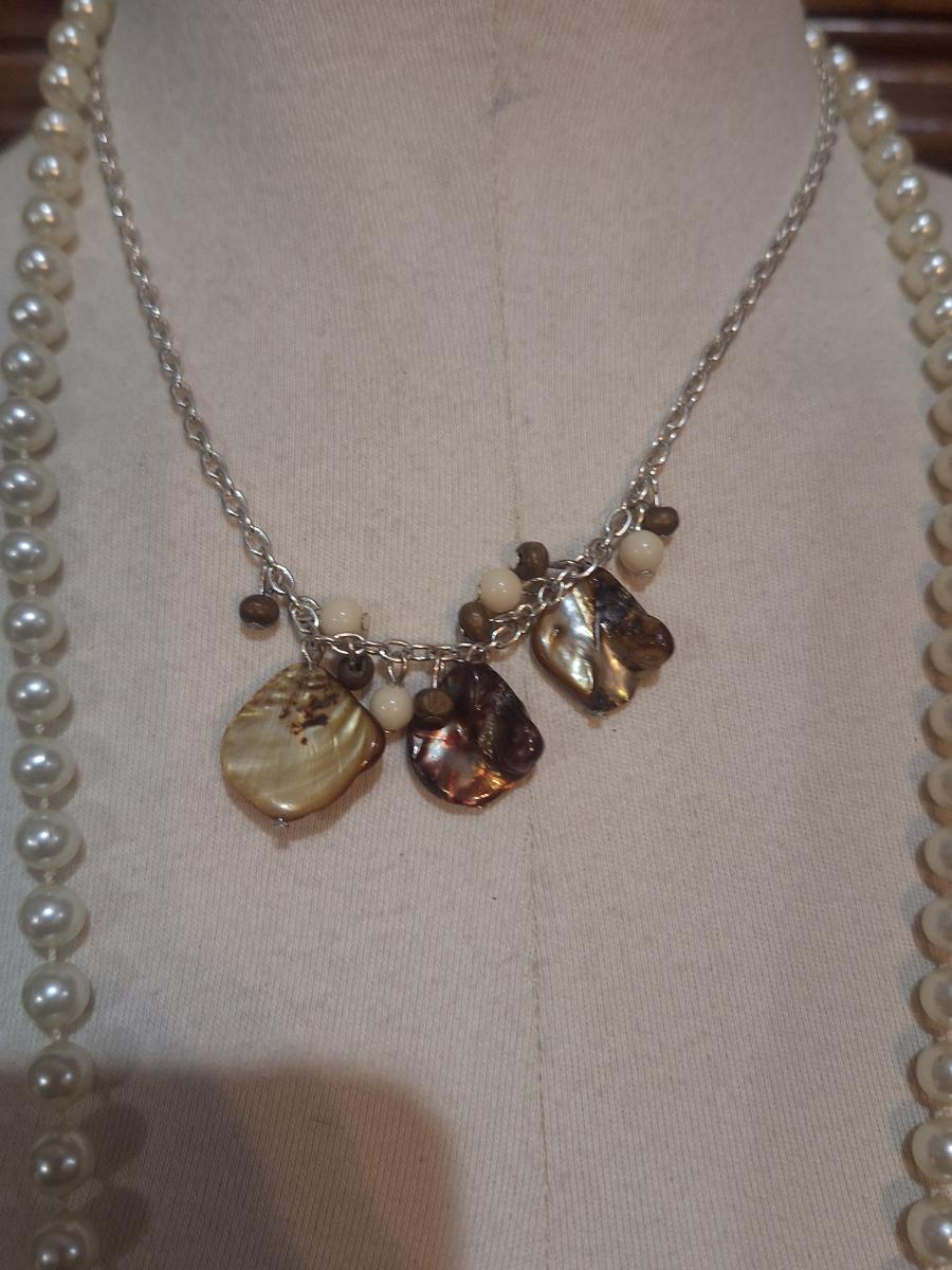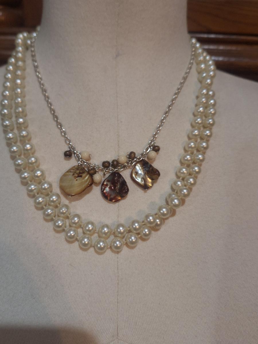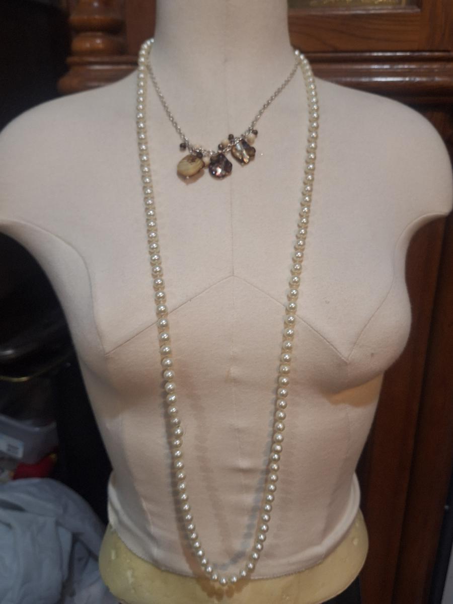 faux pearl necklace- long enough to double strand and a charm necklace -see all photos