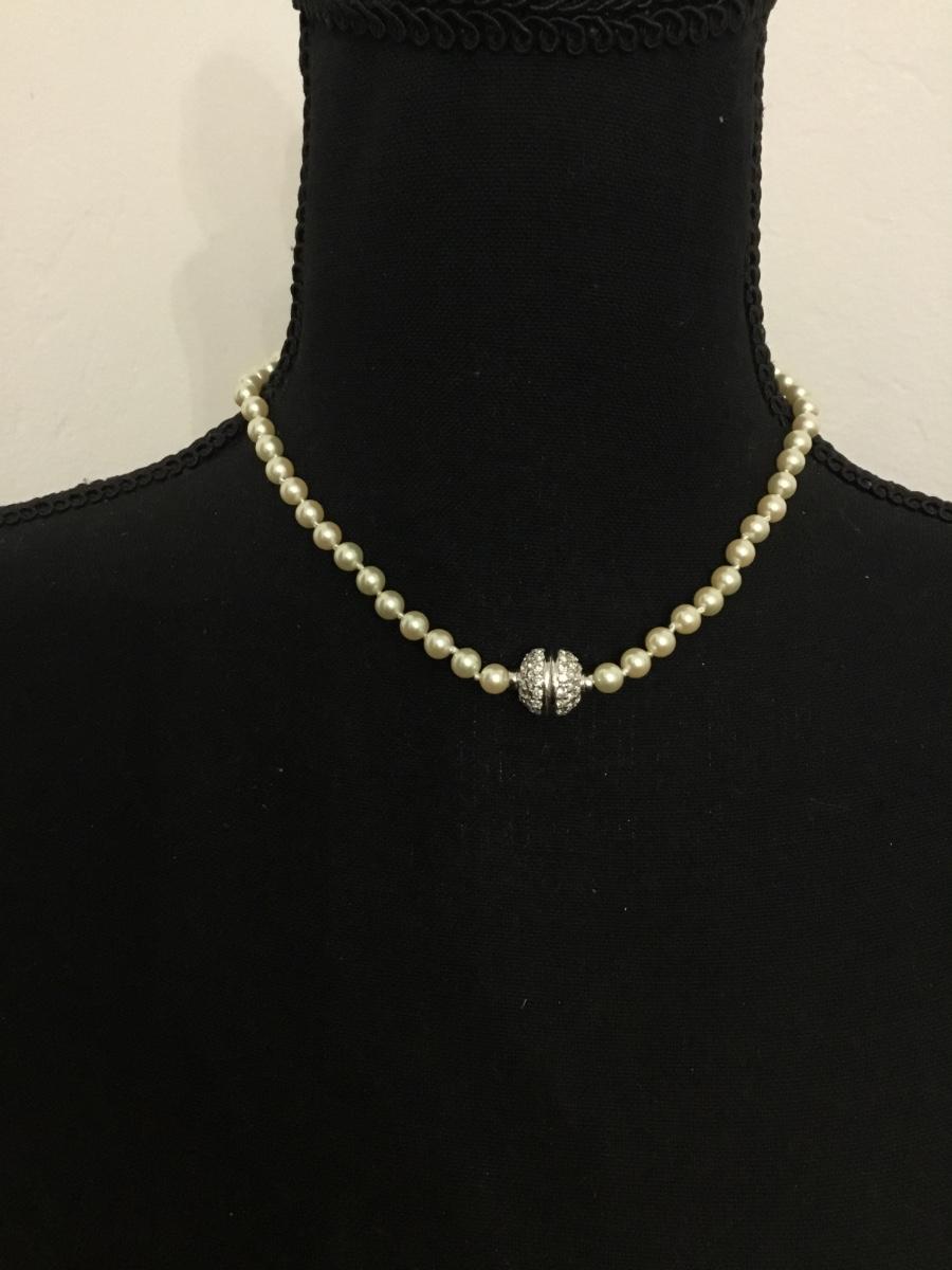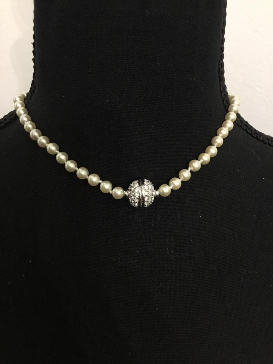Faux pearl rhinestone pendant, choker, style statement, necklace