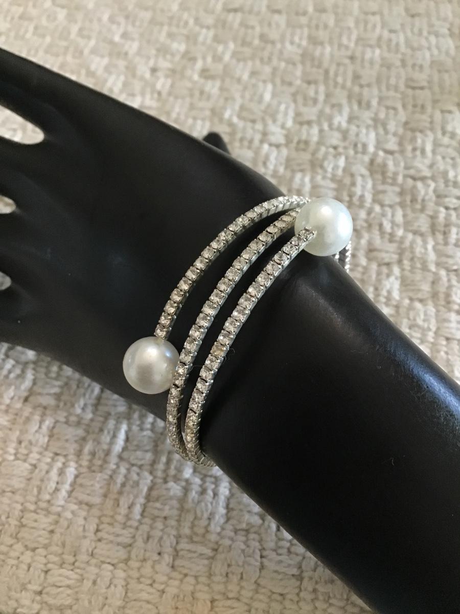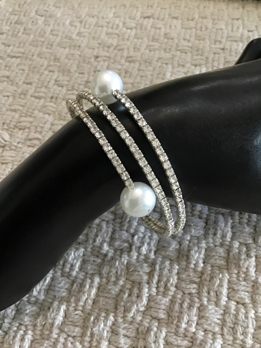 Faux pearl rhinestone wrap bracelet