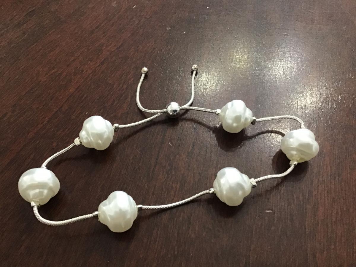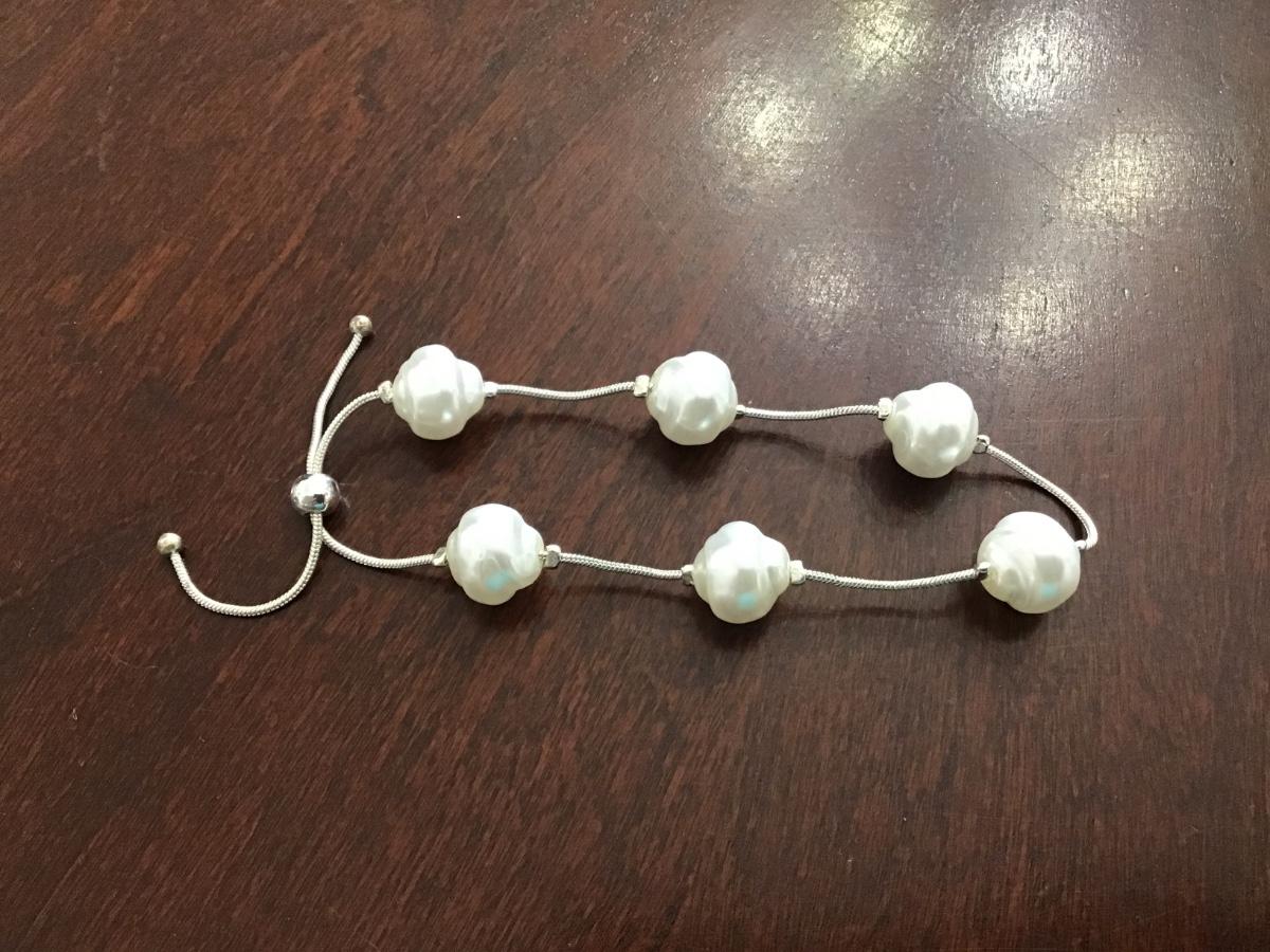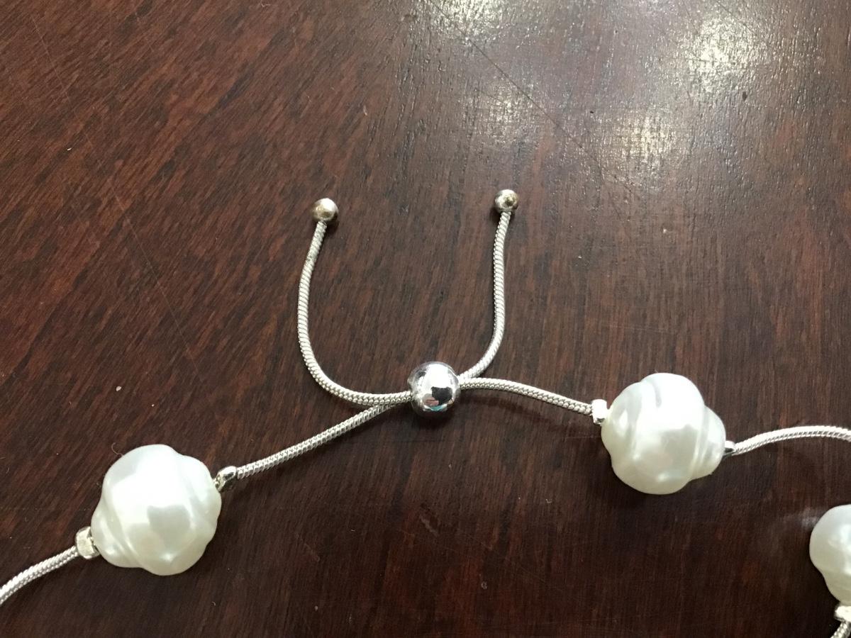 Faux Pearl Silver Tone Slider Bracelet