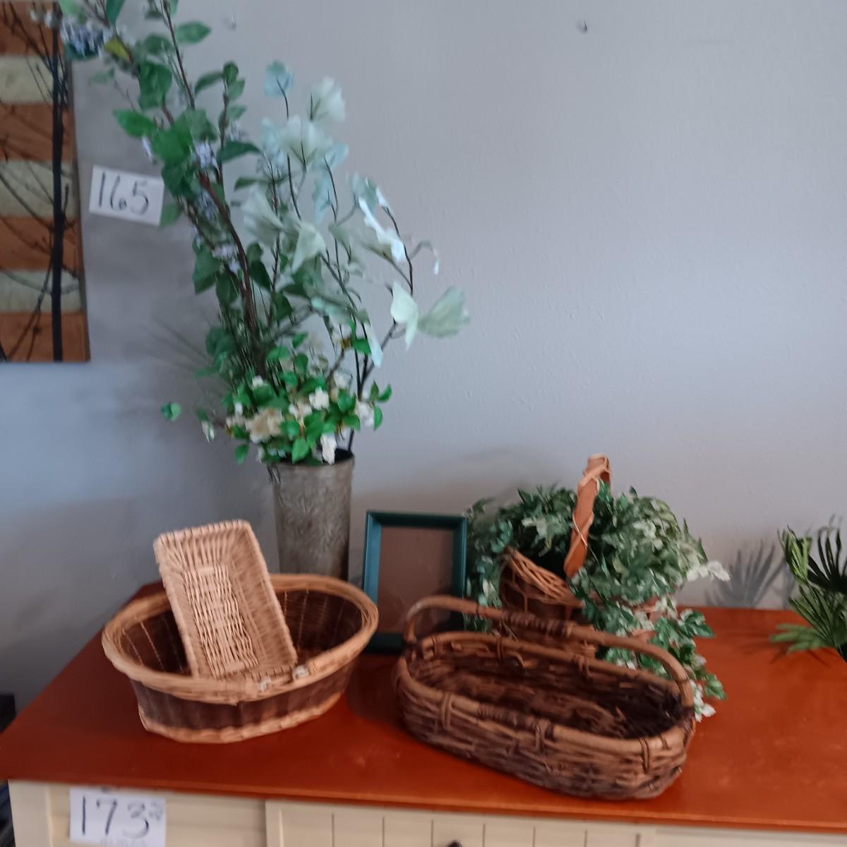 FAUX PLANTS & FLOWERS PLUS A VARIETY OF WICKER BASKETS