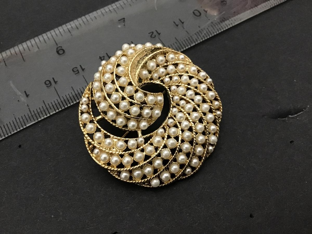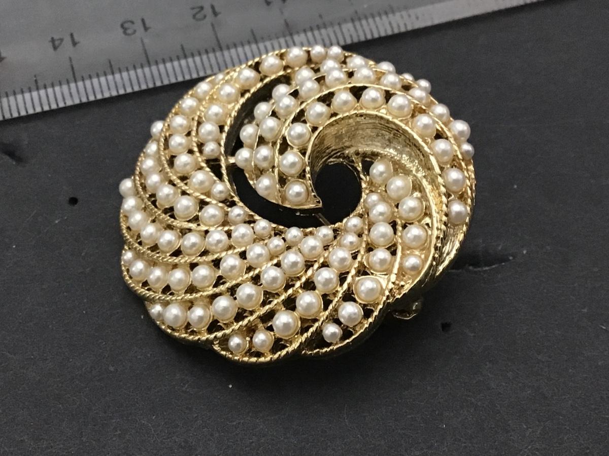 Faux Sea Pearl Brooch Gold Tone
