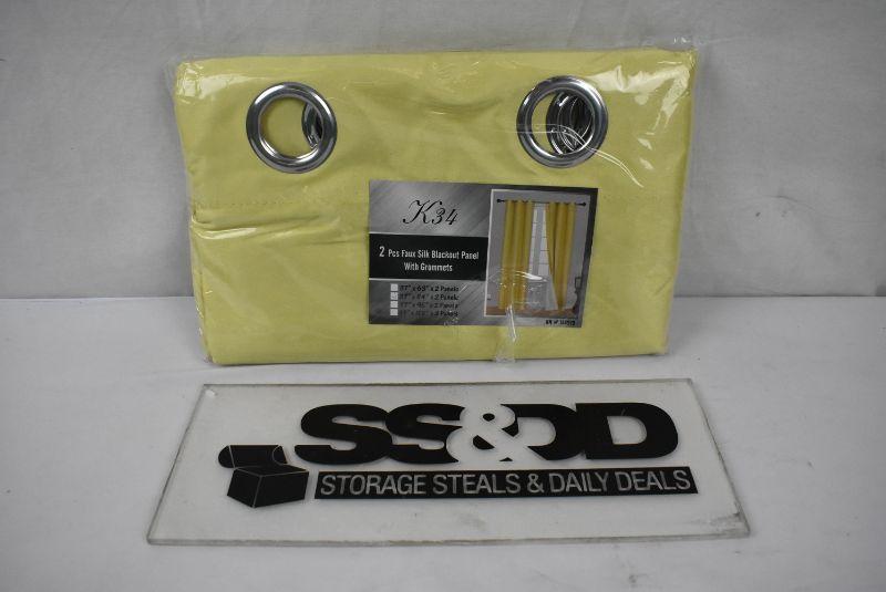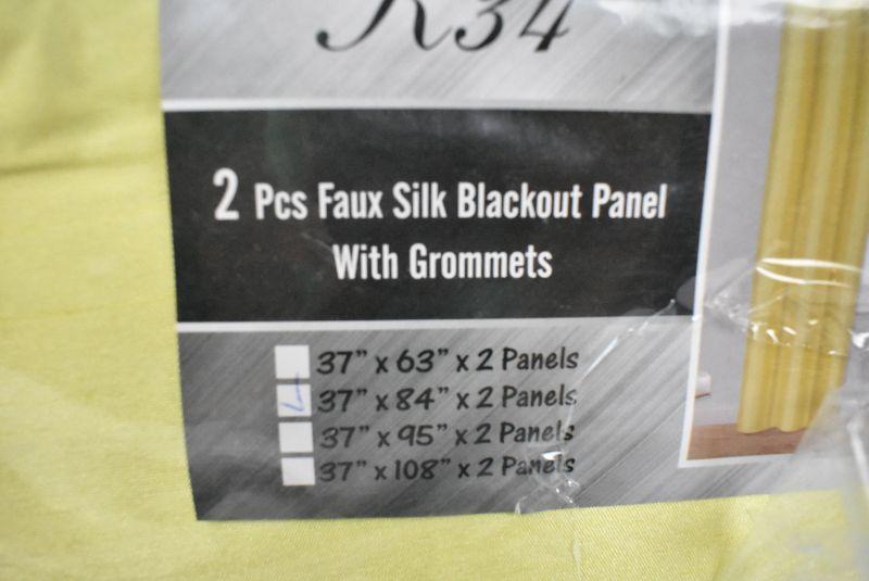 Faux Silk Blackout Panels with Grommets, Qty 2, 37"x84" Each by K34 Yellow Green - New
