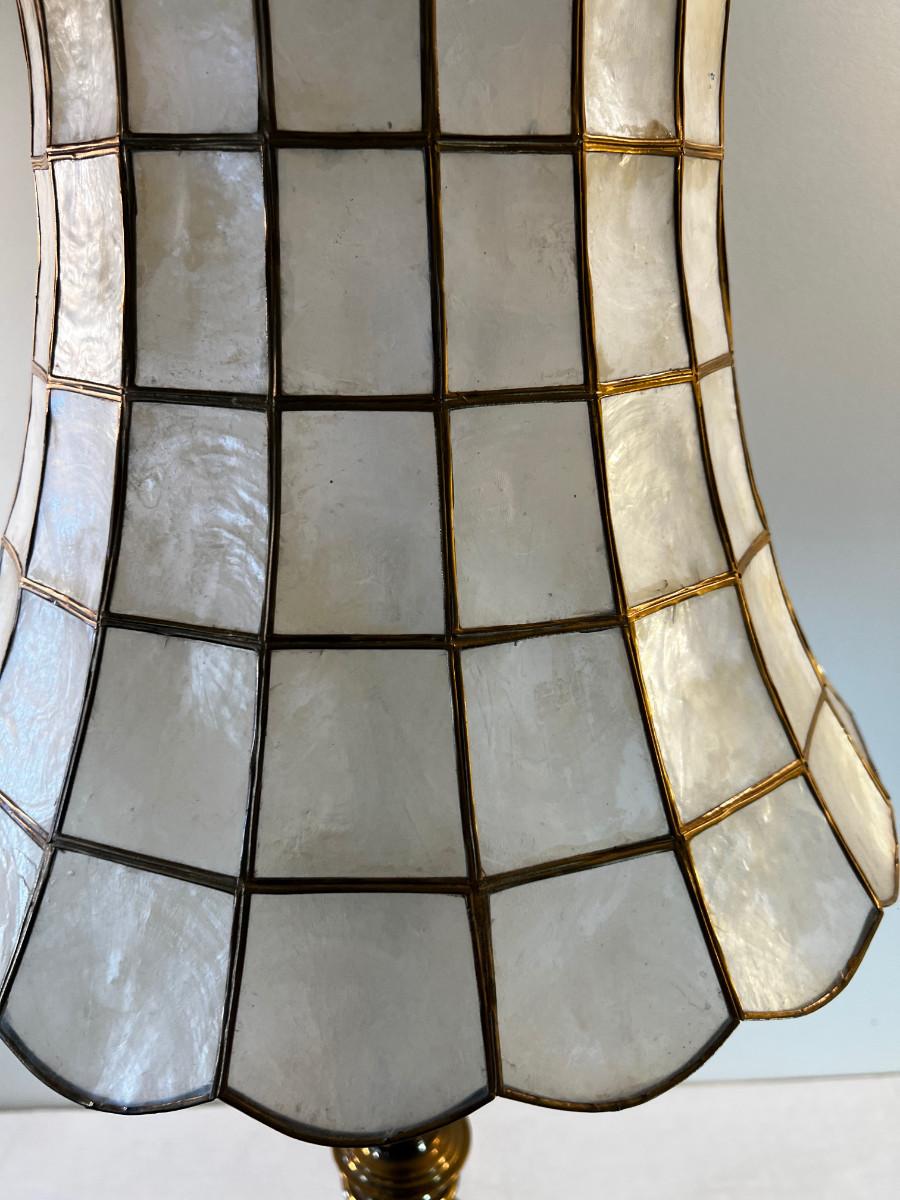 Faux Tortoise Shell Lamp Shade Brass
