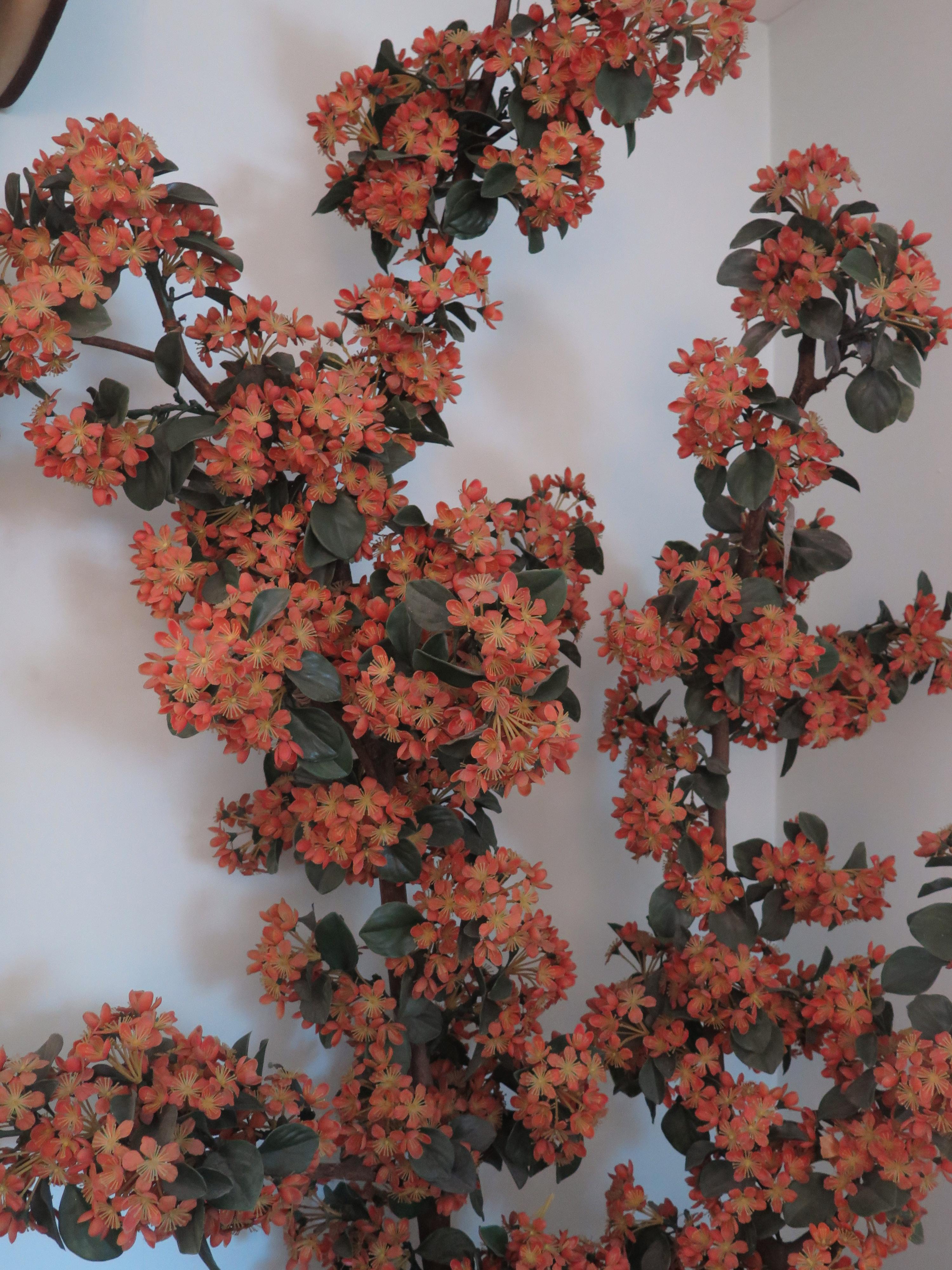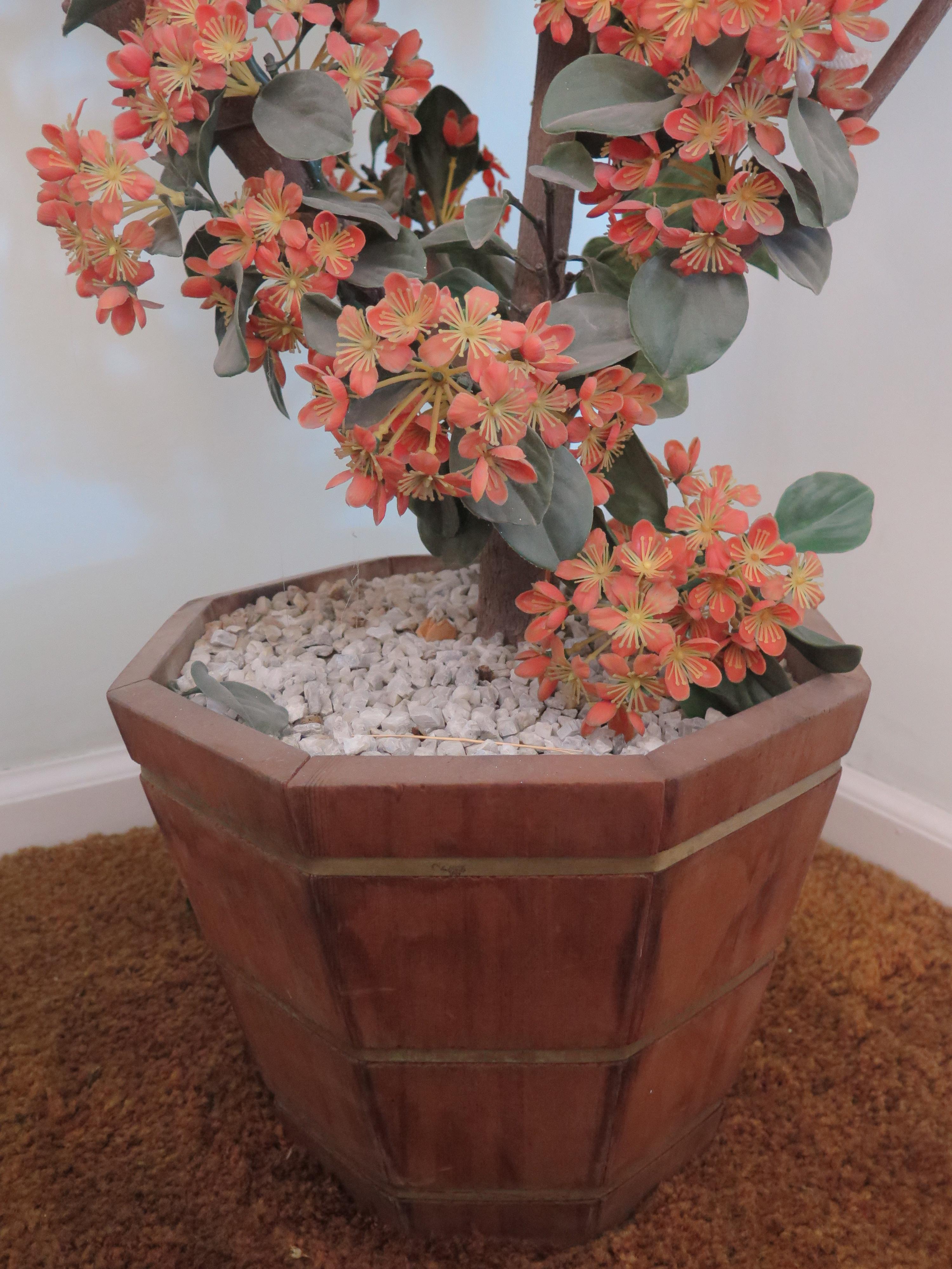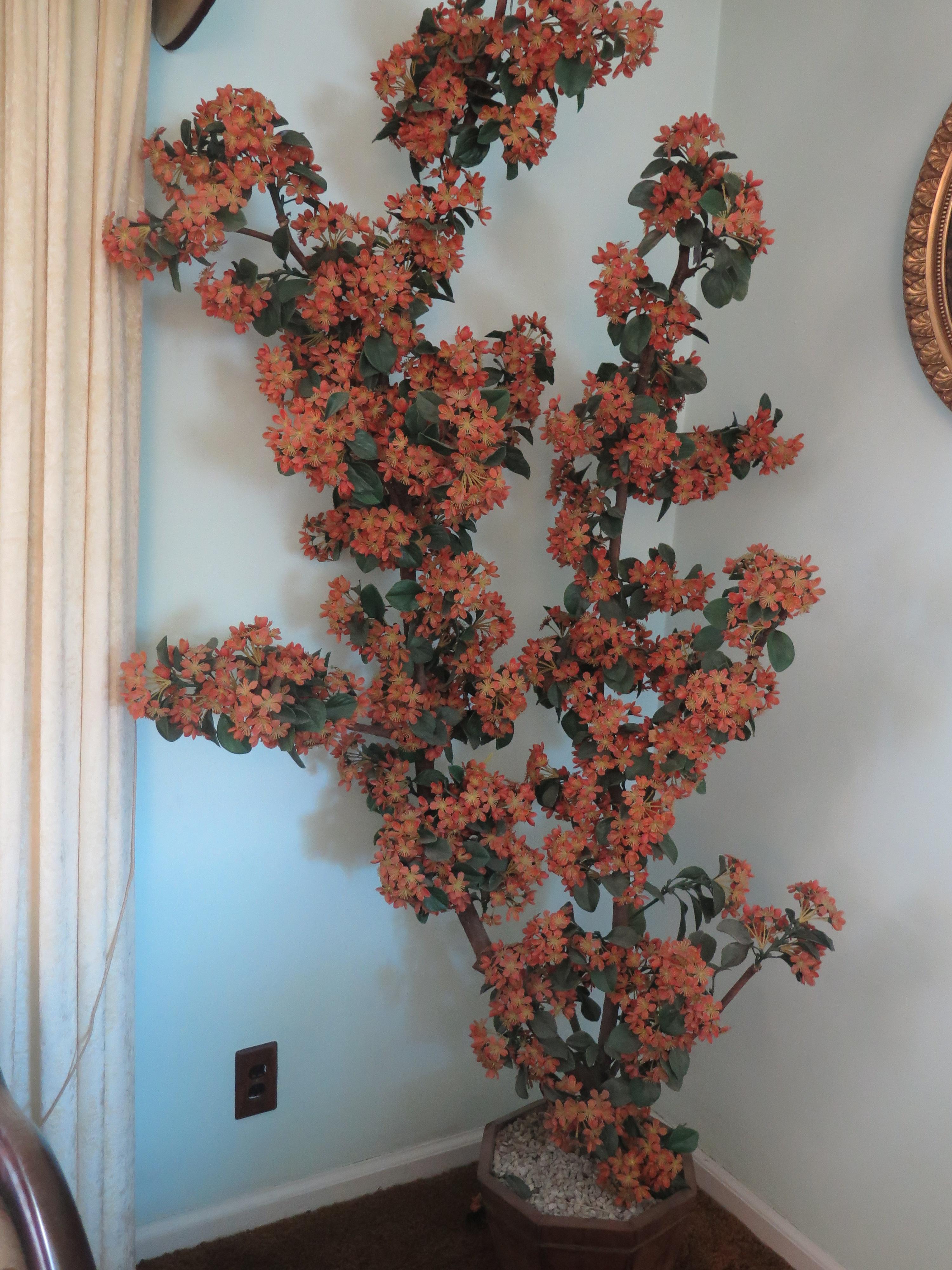 Beautiful faux orange blossom tree stands an impressive 83 inches tall. Please review all photos and read Terms and Conditions before placing a bid. Pick up is Wednesday, November 20 from 4-7pm and Saturday, November 23 from 9am-2pm in Mantua, New Jersey. All sales are final. All sales are as is, where is. Please bring all boxes, tools, and muscle needed to remove your items. Any photo props are not included. All measurements are approximate. Items come from dog-friendly home.
