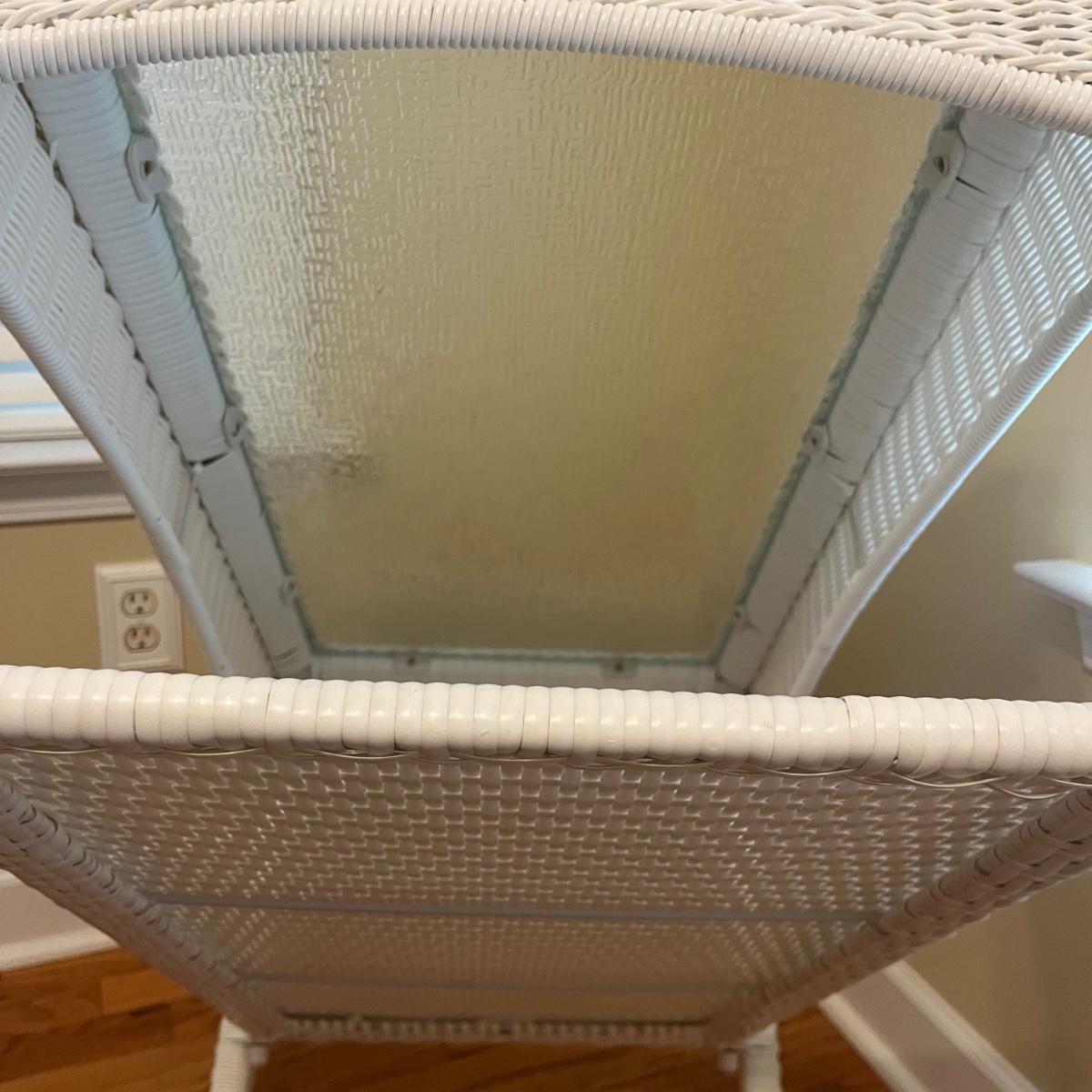 White Wicker Faux Rattan Love Seat & Glass Top Table (LR-MG)