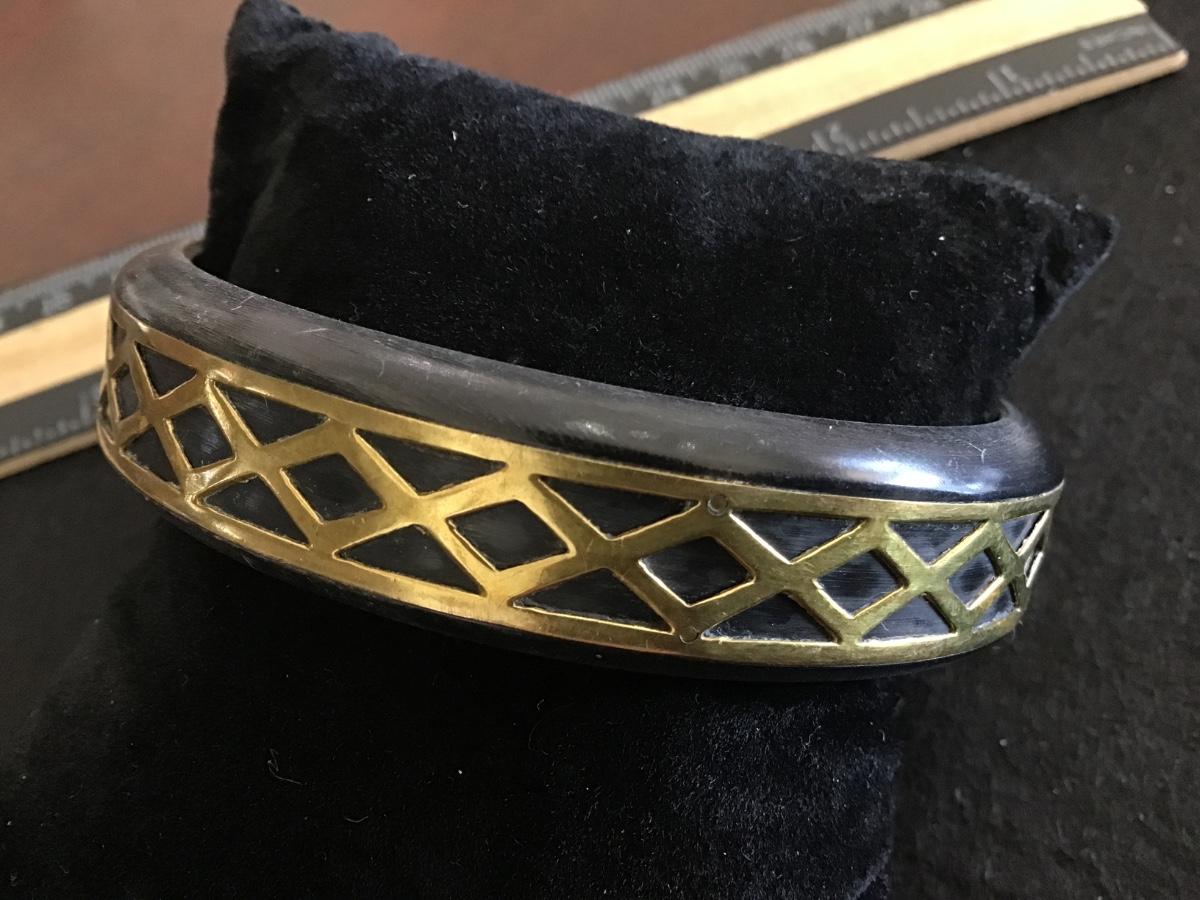 Faux Wood And Brass Bangle