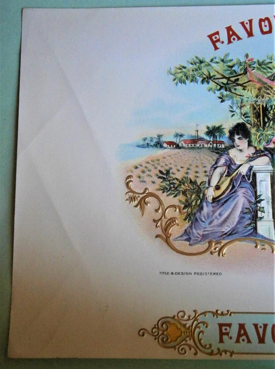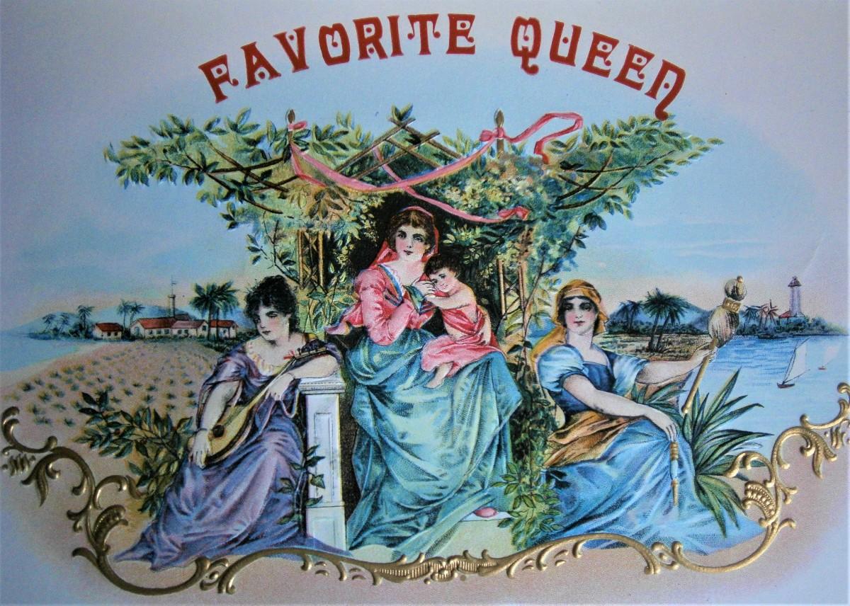 "FAVORITE QUEEN" Inner Lid Cigar Box Label, form early 1900's