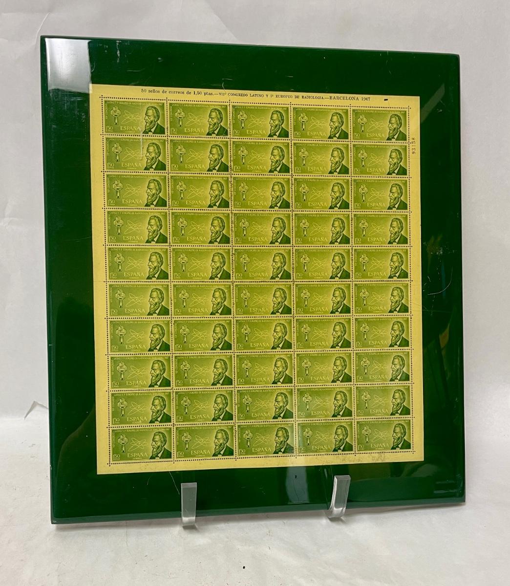 Lacquered Sheet of Stamps Espana Spain Radiology Congress Barcelona Europa