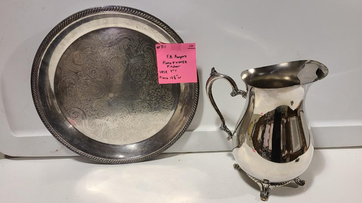 Rodgers Silverplate Plate and Water Pitcher -Item #311  Pitcher  9"T Plate  12½"W