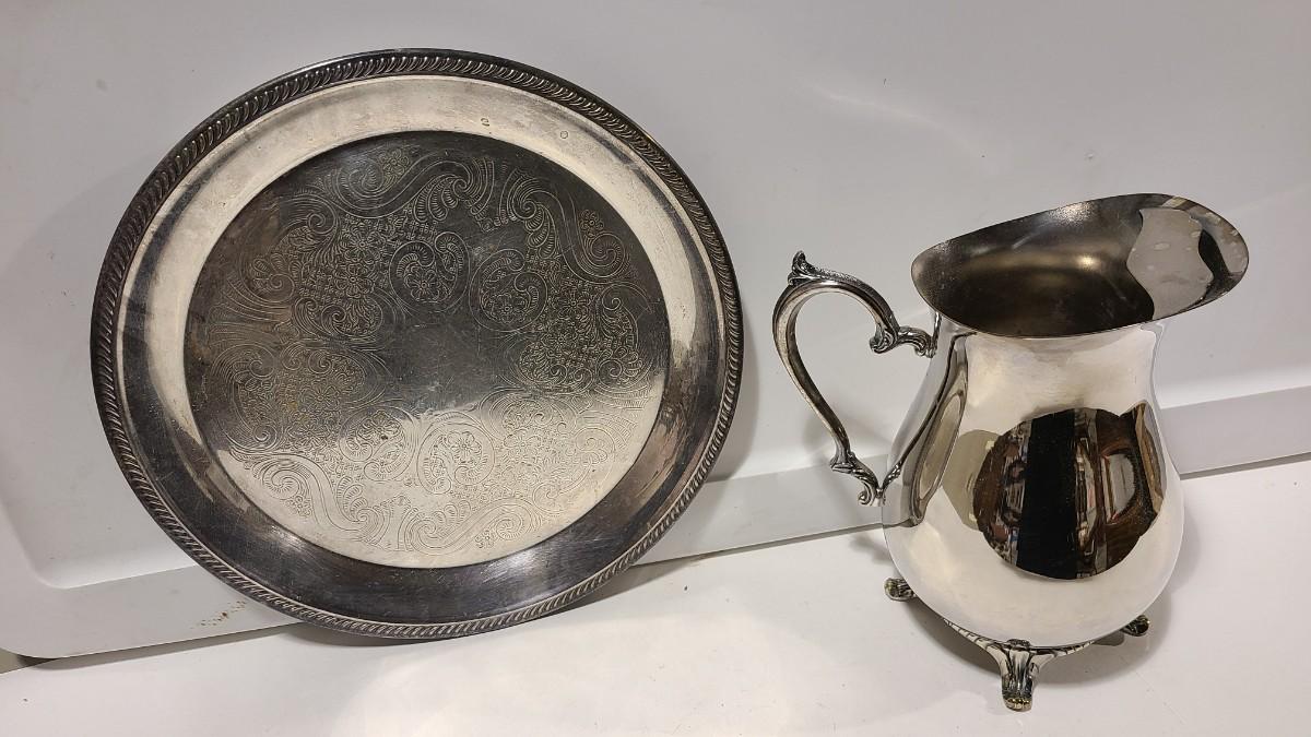 Rodgers Silverplate Plate and Water Pitcher -Item #311 Pitcher 9"T Plate 12½"W
