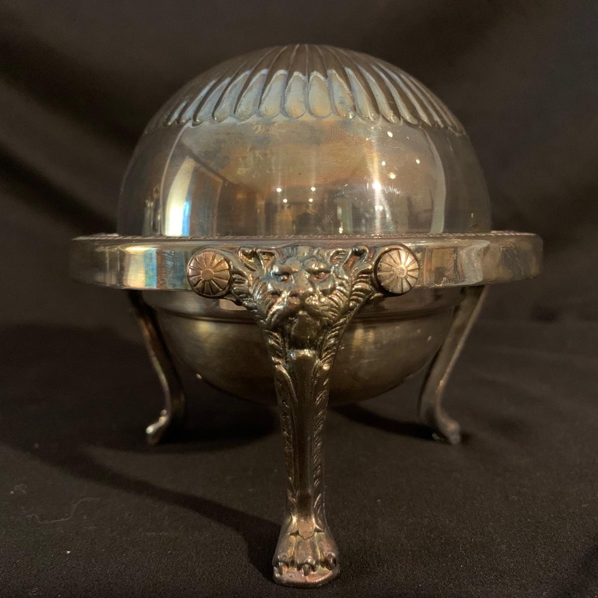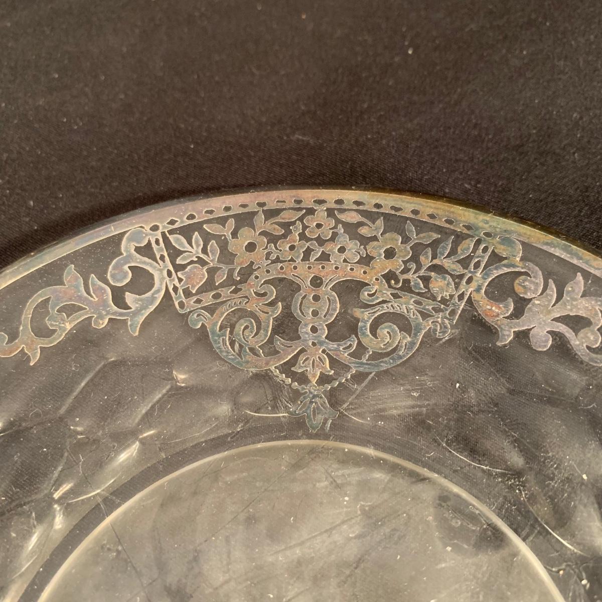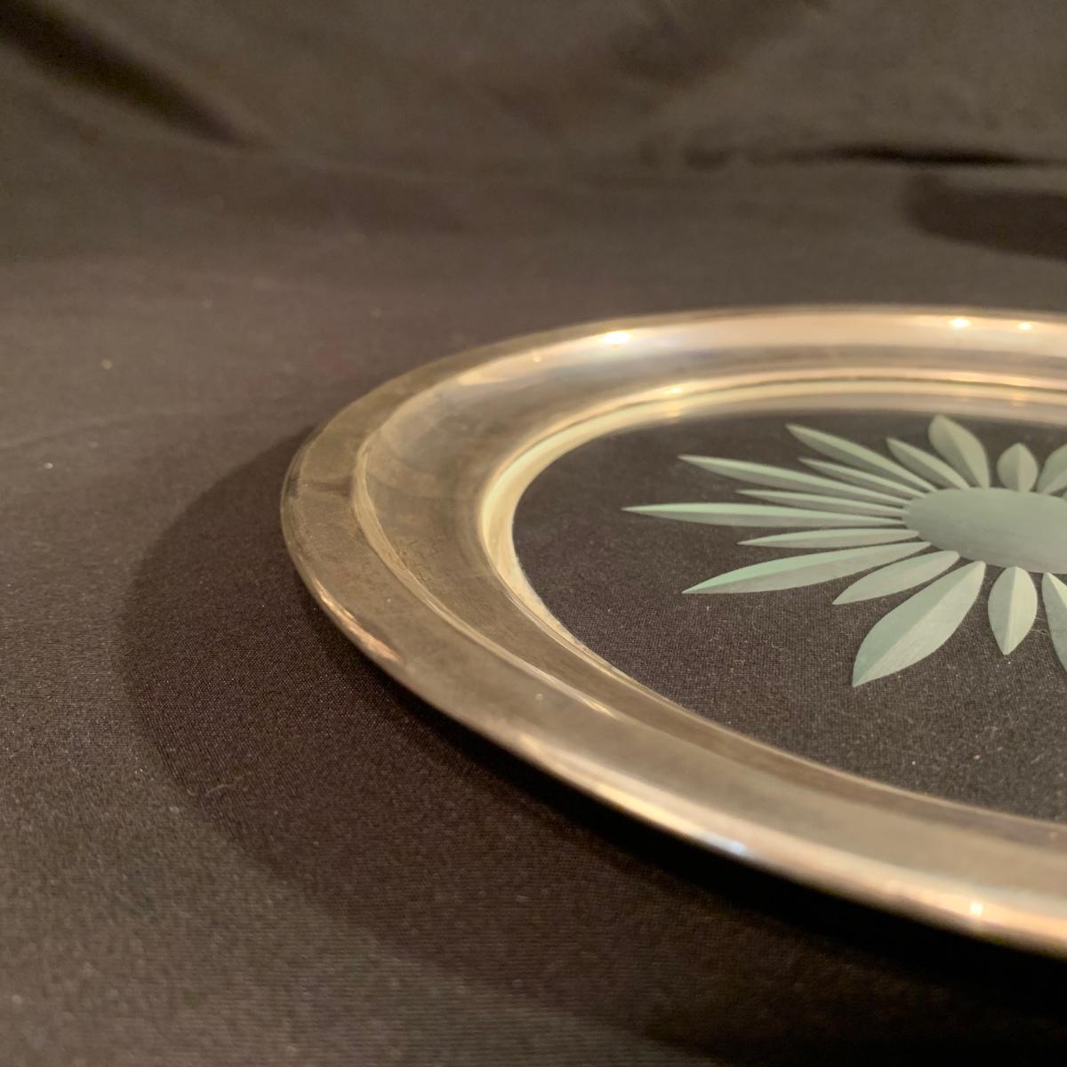 This unique lot includes a small FB Rogers silver caviar dish with domed roll-bad lid and glass insert. This dish features lions at the top of each foot. Lot also includes small plate with silver design that measures 6”D and a larger etched glass plate with a silver-toned rim that measures 8”D. You’ll find three silver metal spoons and thirteen teaspoon straws. This lot is quite unique. All items have aged over time but appear to be in good condition.