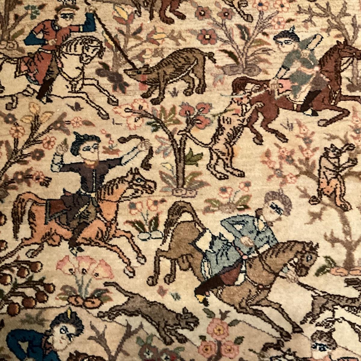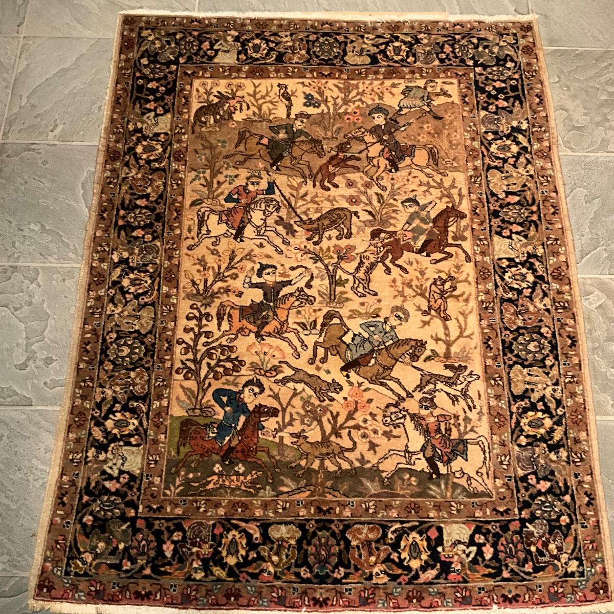 FB837 Vintage Oriental Wool Hunt Scene Persian Rug