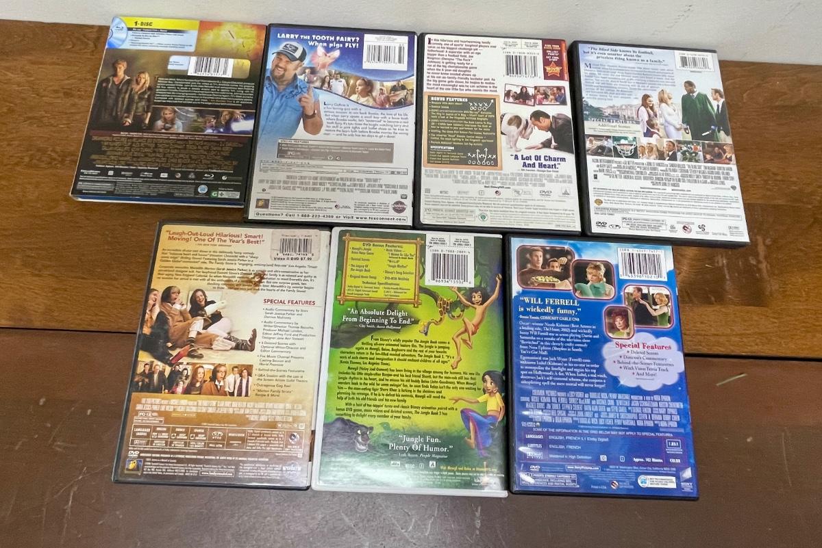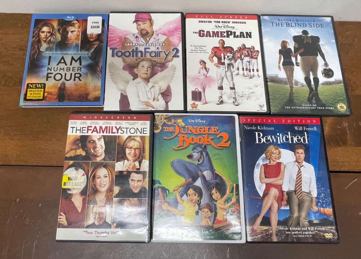 7 different movies, including "Bewitched", "The Game Plan", "I Am Number Four", and more. All in good condition.