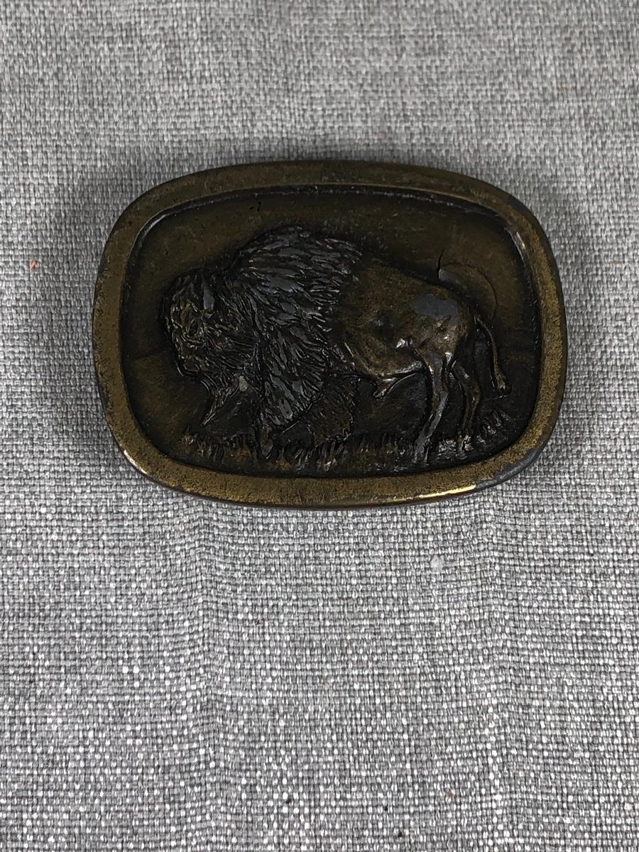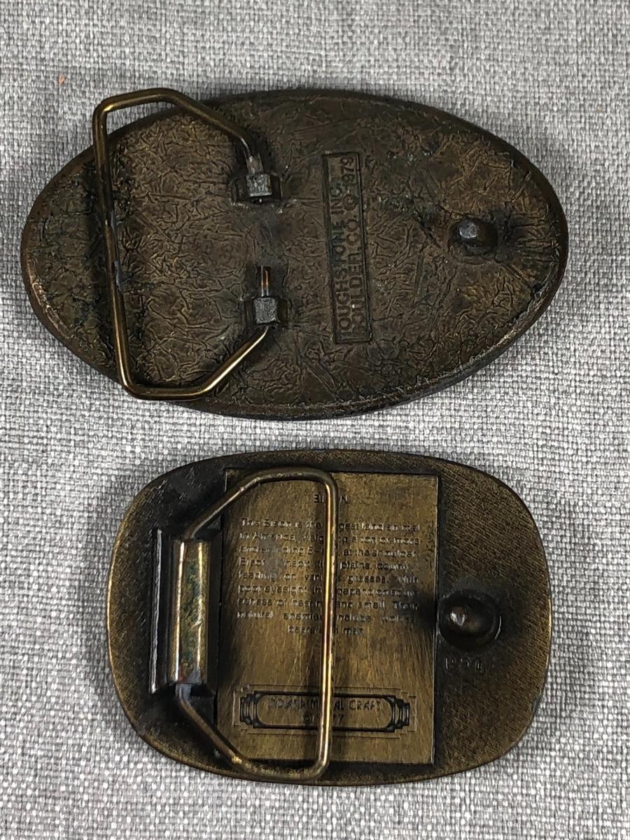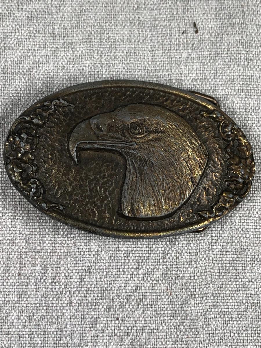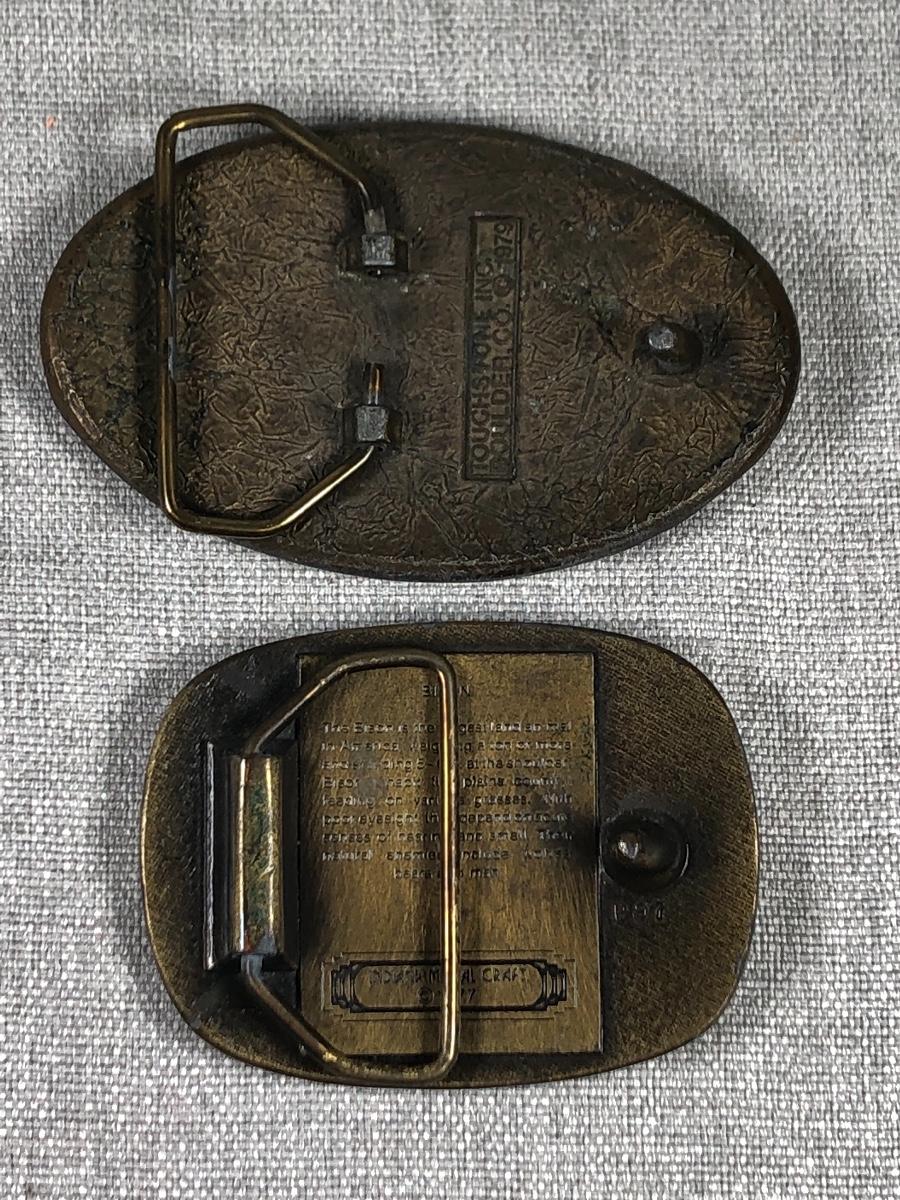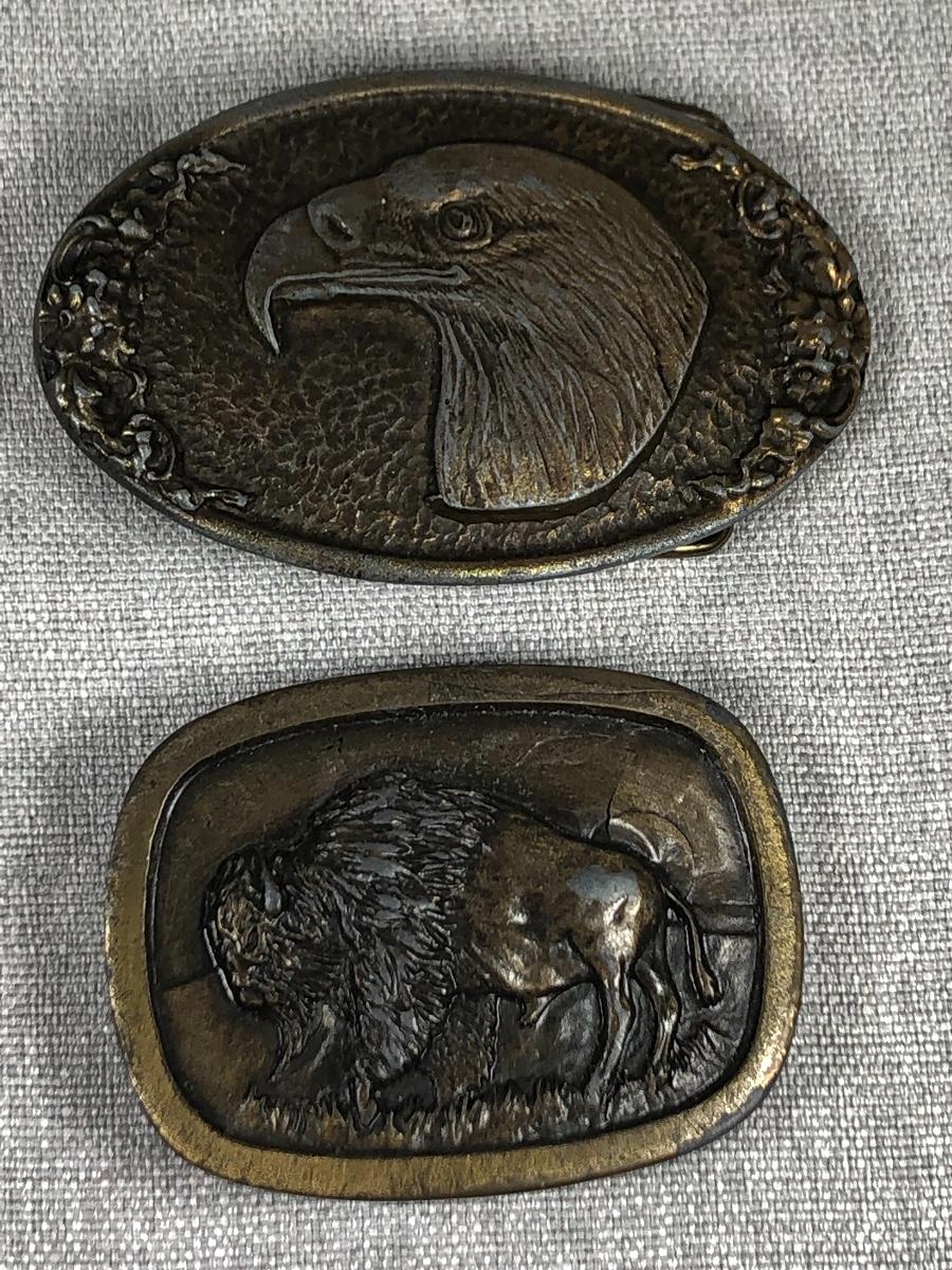 Pair of belt buckles. Bald Eagle and buffalo themed. Good condition.