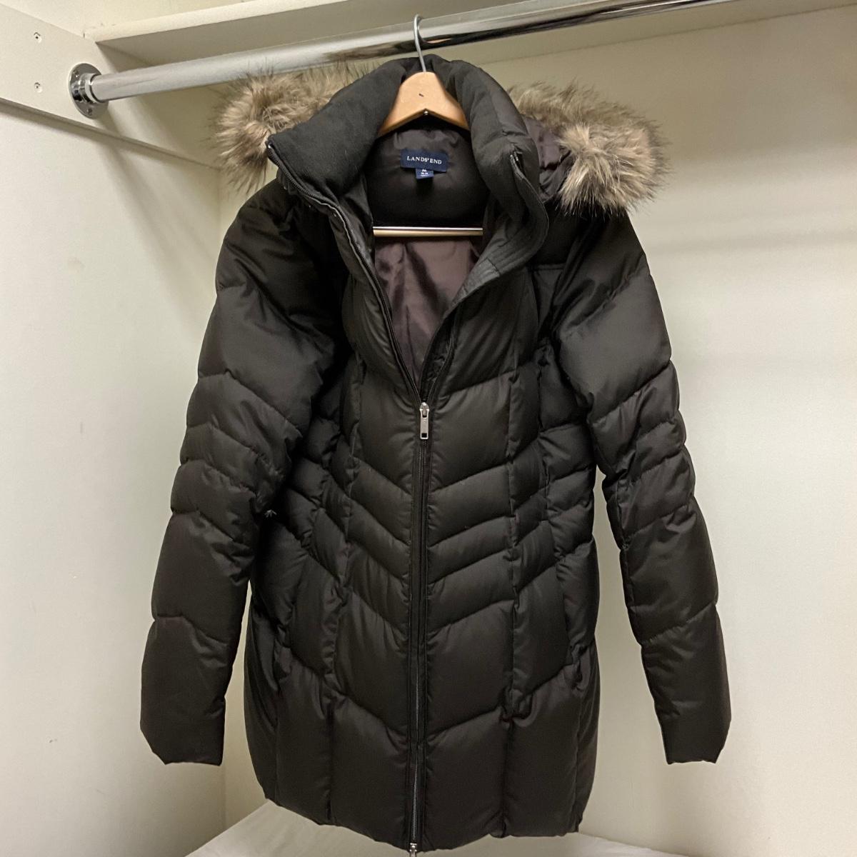 FC2142 Black Ladies Lands End Quilted Faux Fur Hooded Jacket