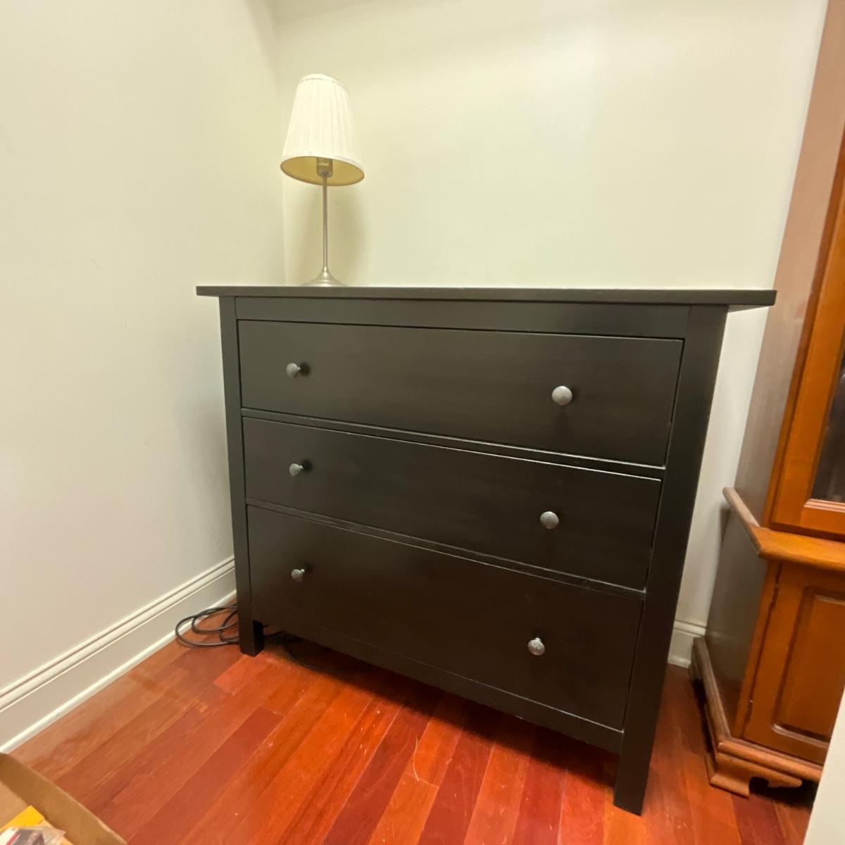 FC2157 New Black Three Drawer Dresser and Lamp