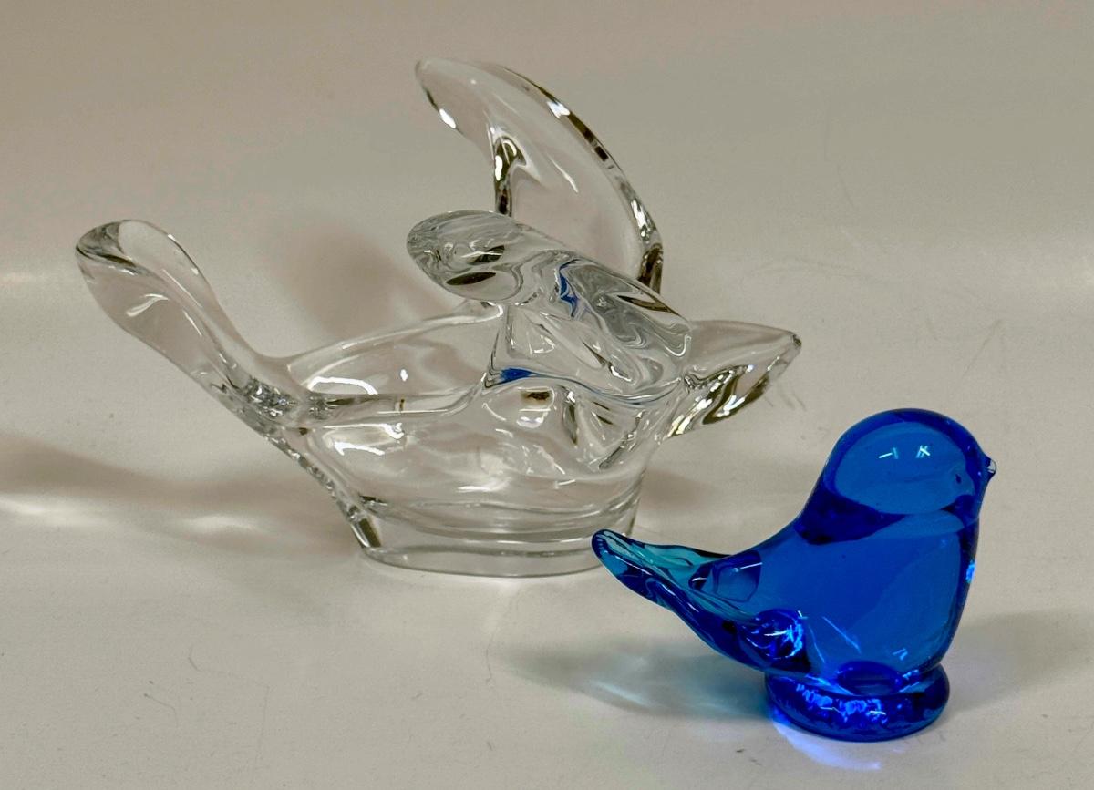 Princess House Crystal Art Glass Turtle Dove Bowl Candy Trinket Dish Bird and Terra Studios glass Bluebird of Happiness. Both in good condition.
