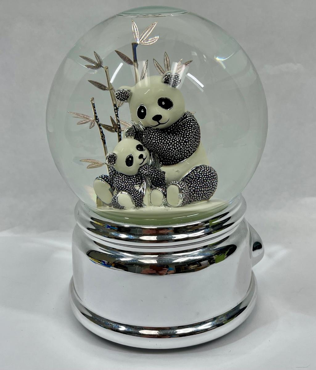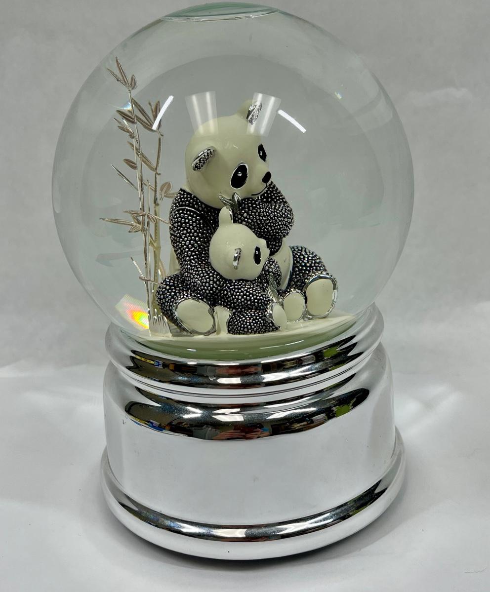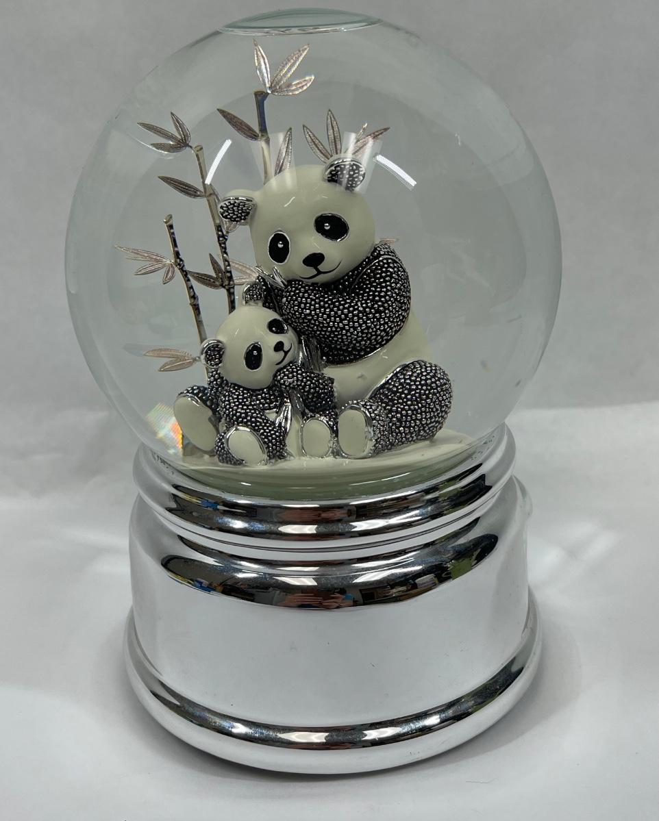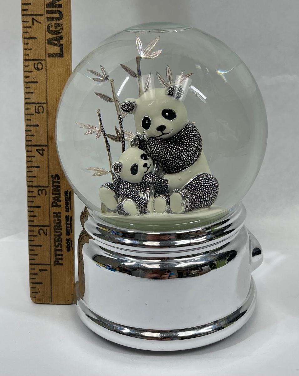 Vintage Panda with Baby Water Snowglobe Musical Decor Danbury