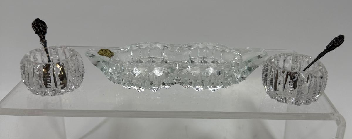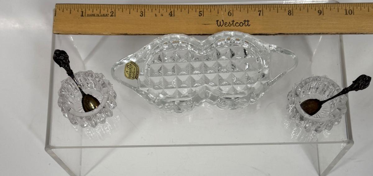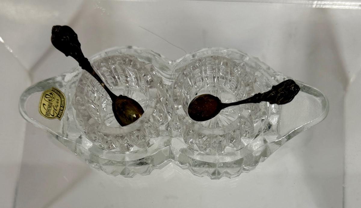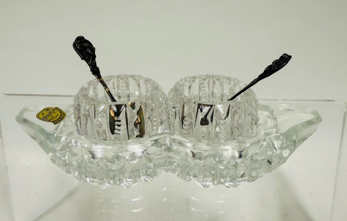 Bohemia Glass made in Czechoslovakia Open Salts Set of 2 salts and 2 silver spoons with tray